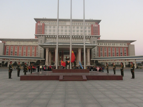 为强化考纪、端正考风,以诚信考试迎接即将到来的2014年元旦,2013年12月31日清晨,经贸系团总支、学生会组织同学们参加了“喜庆元旦,诚信迎考”主题升旗仪式,经贸系全体同学参加了此次升旗仪式。