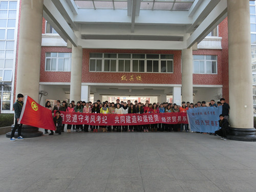 诚信乃做人之本,“诚信考试”更是每个同学必须遵守的考试规则。期末将近,为了端正考风,严肃考纪,加强学风建设,营造文明、诚信考试的良好氛围。2014年元月2号中午,经济贸易系团总支、学生会在经贸大厅开展了以“诚信考试”为主题的考试签名活动。