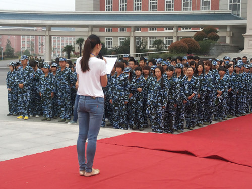 2013年9月23日清晨,由经贸系团总支、学生会组织开展的新生军训主题升旗仪式在综合楼前进行。经贸系学生代表王雅琳在国旗下发表了演讲,表达了新生们顽强拼搏、锐意进取的壮志雄心。