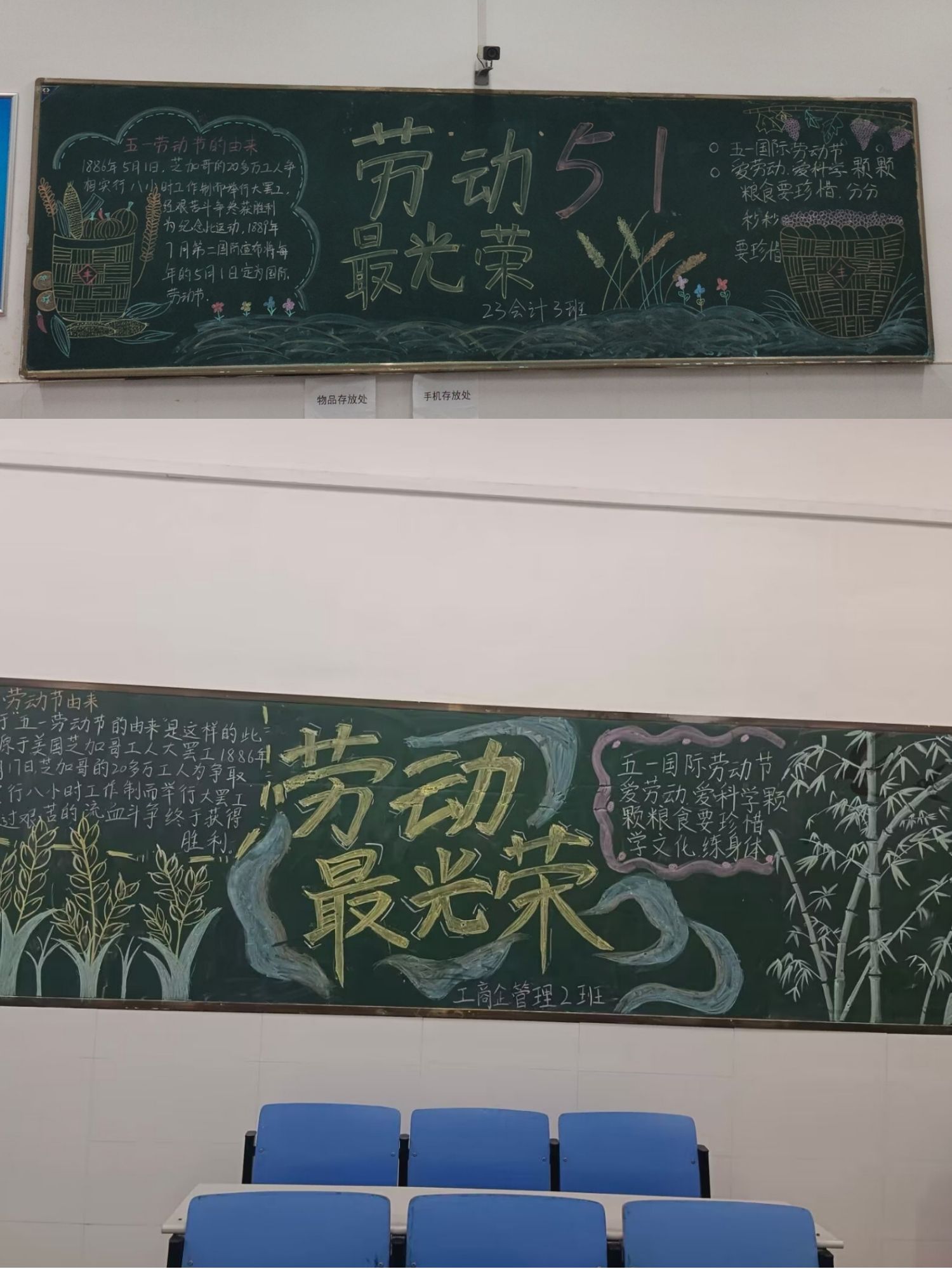 为弘扬劳动精神,培养同学们对劳动的热爱和尊重。2024年4月25日,管理学院学生会举办“花开五月天,劳动最光荣”主题黑板报比赛。