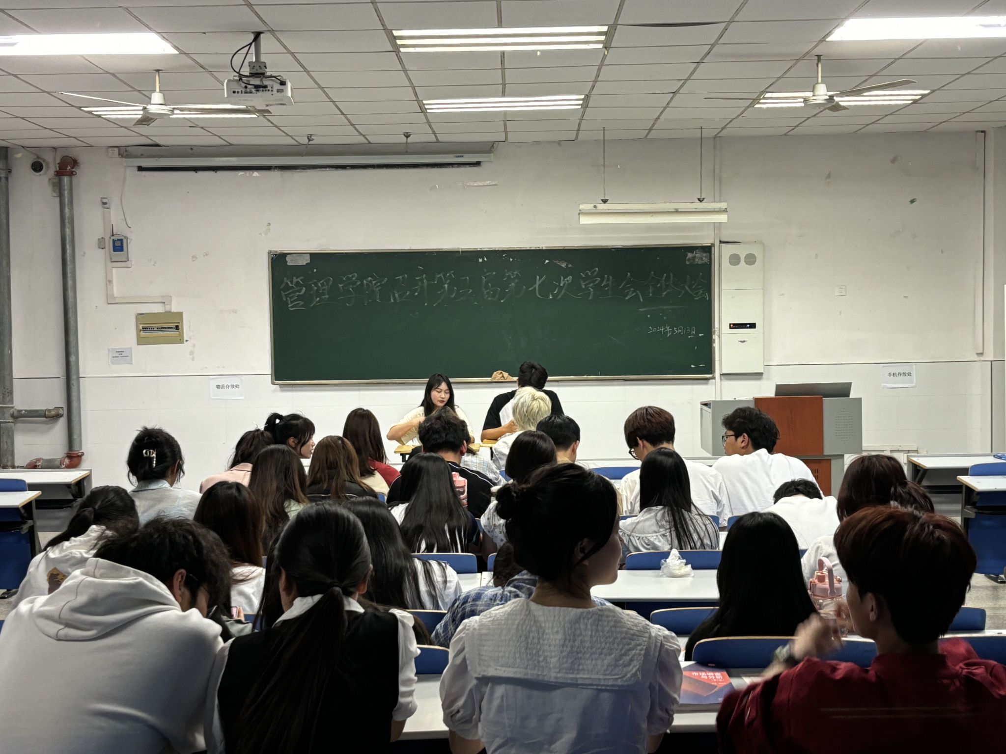 2024年5月13日,管理学院学生会在致真楼1101教室召开第五届第七次全体会议。