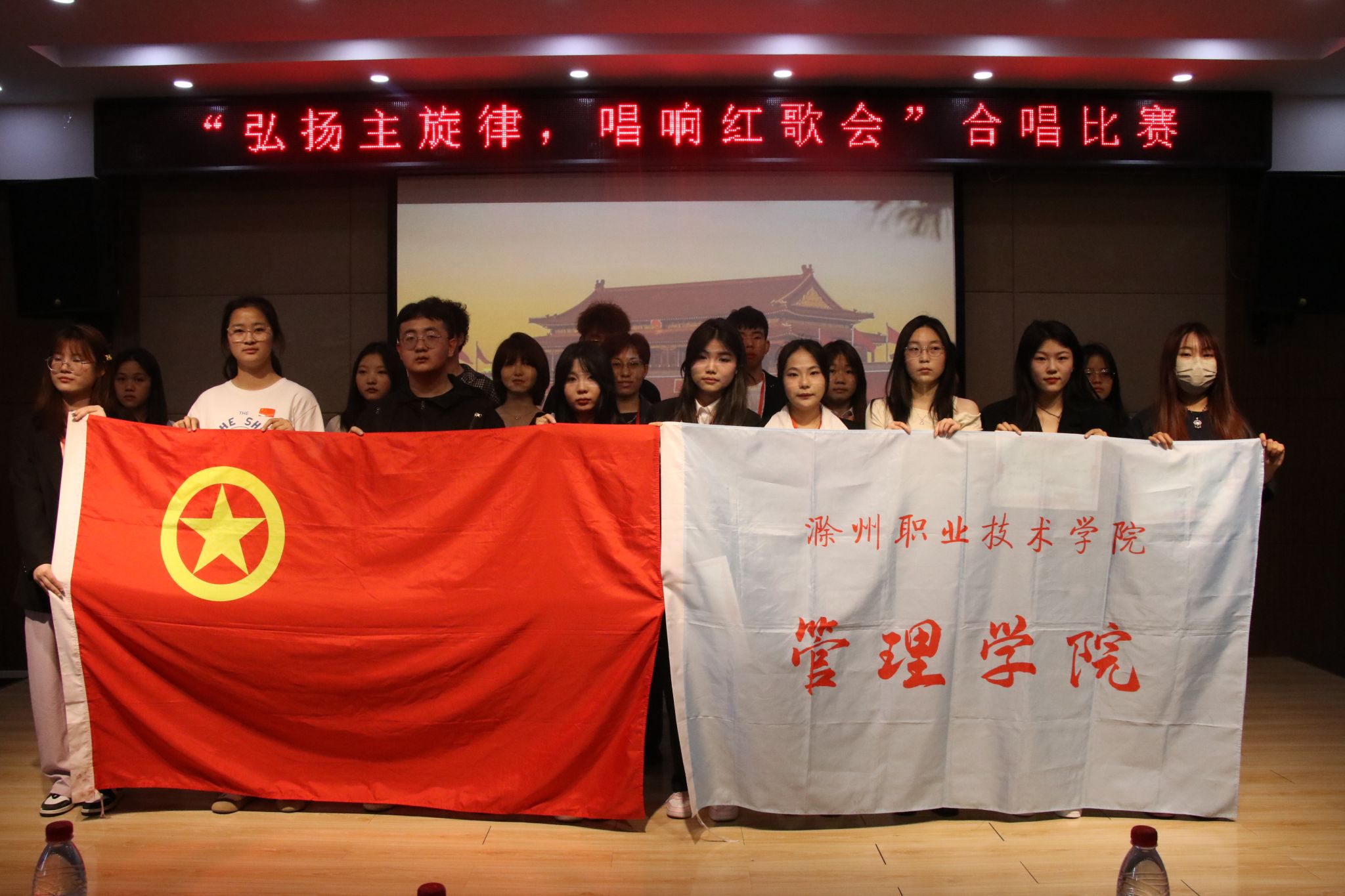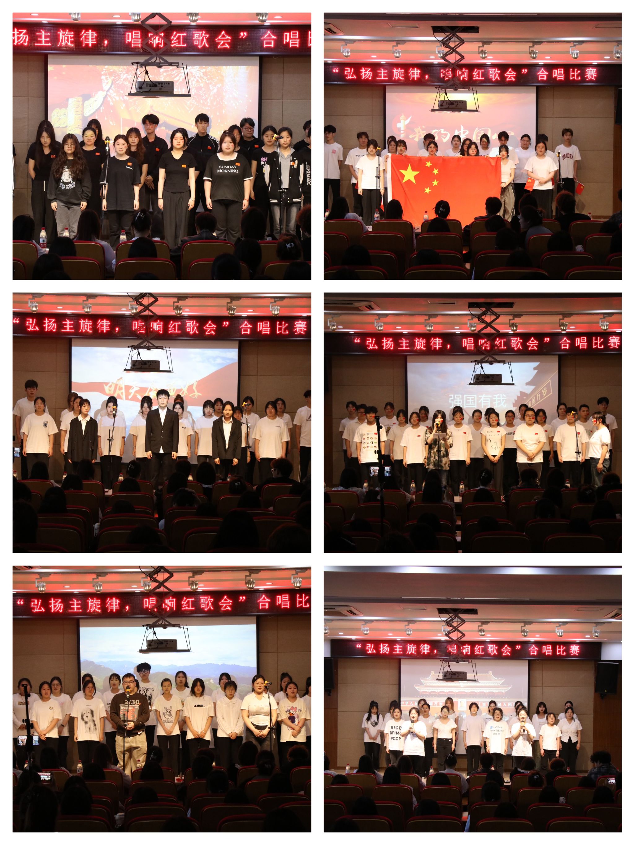 活动现场,各支部同学们热情高涨,积极投入到红歌会的比赛中。有的支部结合手势舞,将歌曲的情感通过肢体动作完美呈现;有的支部则通过丰富的表演形式,将歌曲演绎得生动有趣。每个支部都展现出了独特的创意和风格,让整个红歌会充满了活力和激情,同时也让观众们在欣赏美妙的歌声中,感受红色文化的魅力。经过激烈的角逐,最终评选出了名次,23级旅游管理3班团支部荣获一等奖,23级大数据与财务管理2班团支部、23级大数据与会计4班团支部、23级工商企业管理2班团支部、23级大数据与会计2班团支部、23级旅游管理2班荣获二等奖团支部,23级大数据与财务管理1班团支部、23级大数据与会计1班团支部、23级大数据与财务管理3班团支部、23级工商企业管理1班团支部、23级大数据与会计3班团支部、23级旅游管理1班团支部荣获三等奖。