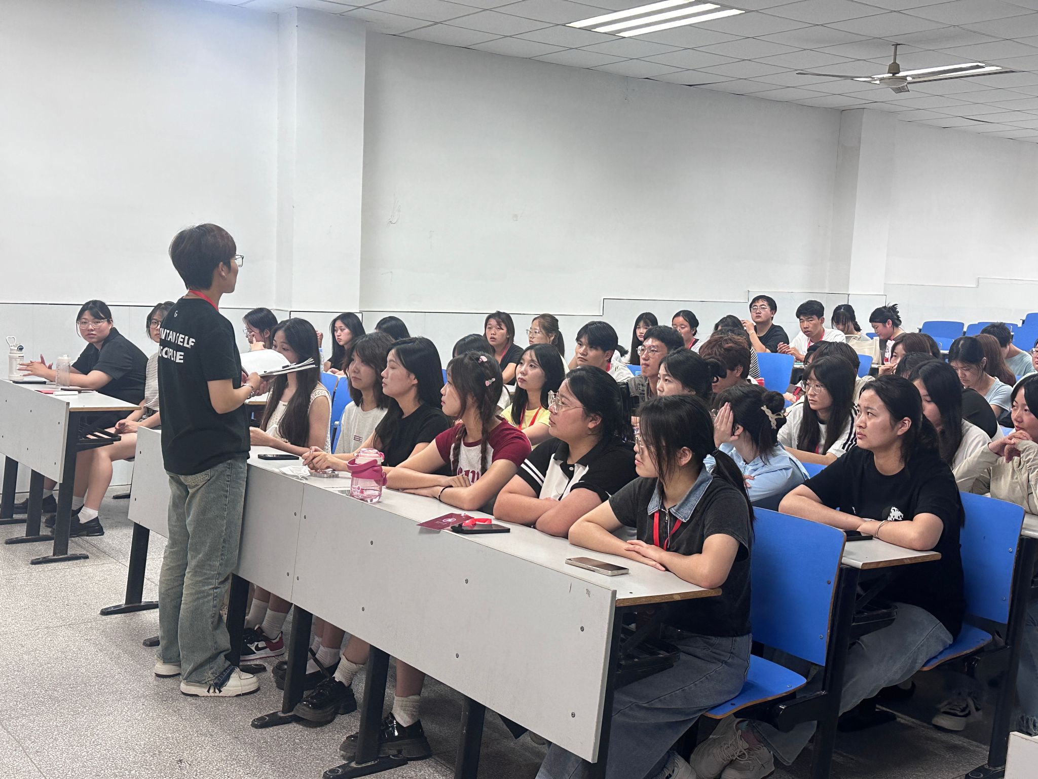 团总支在各项工作中均取得了显著成绩,得到学院领导和老师们的高度认可。从社会实践的深度探索到志愿服务的广泛参与,团干们精心策划,确保活动有序进行。每一位成员都用实际行动诠释了责任与担当。 其次,随着新学期的开始,迎新工作成为了团总支目前的首要任务。为确保迎新工作的顺利进行,王婷详细讲解了迎新的各项流程,包括新生接待、信息登记、行李搬运等各个环节,让每位干事都能明确自己的职责和任务。她强调,在迎新过程中,成员们必须严格遵守着装规定,穿好工作服,佩戴好工作牌,以饱满的热情和积极的态度投入到迎新工作。同时,鼓励大家多与新生沟通交流,分享大学生活经验,帮助他们尽快适应新环境,开启丰富多彩的生活篇章。