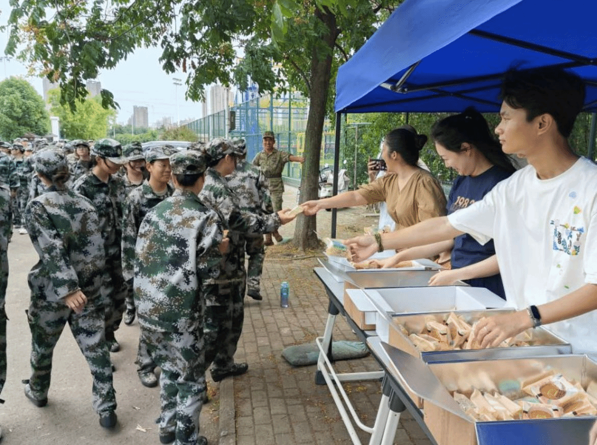 上午阳光明媚,操场上军训的号角依旧嘹亮,我们的校园内也洋溢着别样的温情。管理学院党总支副书记何文婧老师和辅导员丁晓宇老师带着精心准备的月饼,来到军训现场,为每一位坚持训练、挥洒汗水的学子送上了节日的惊喜。每一块月饼都承载着老师们对学生们深深的关怀与期望,不仅是对大家军训期间辛勤付出的肯定,更是希望在异乡求学的学子们能感受到家的温暖。