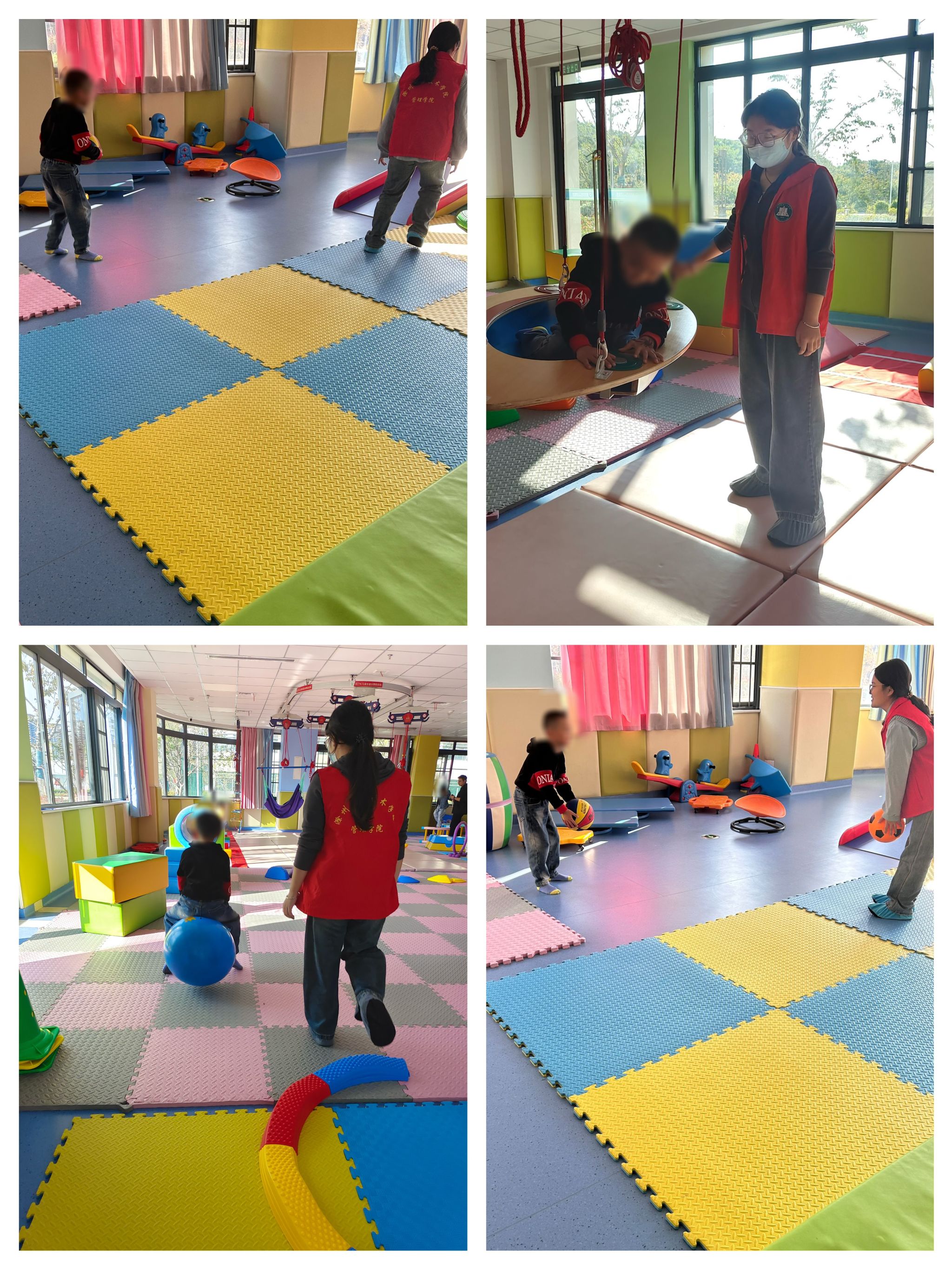 活动当天,志愿者们怀着满满的热情早早来到活动地点。在医务老师的带领下,他们对儿童活动训练室、图书馆等区域进行了全面打扫。大家齐心协力,给孩子们营造一个干净、整洁的环境。扫帚与拖把的挥舞声,仿佛是一首充满爱心的交响曲,奏响了志愿服务的前奏。打扫完毕后,志愿者们开始与孩子们进行互动。他们一起学习、一起训练,耐心地教导孩子们知识和方法。孩子们那专注的眼神和认真的表情,让志愿者们感受到了他们对学习的渴望。在游戏环节中,欢声笑语回荡在整个空间。志愿者们与孩子们手牵手,共同沉浸在游戏的欢乐中,那一刻,他们之间没有距离,只有满满的爱与温暖。