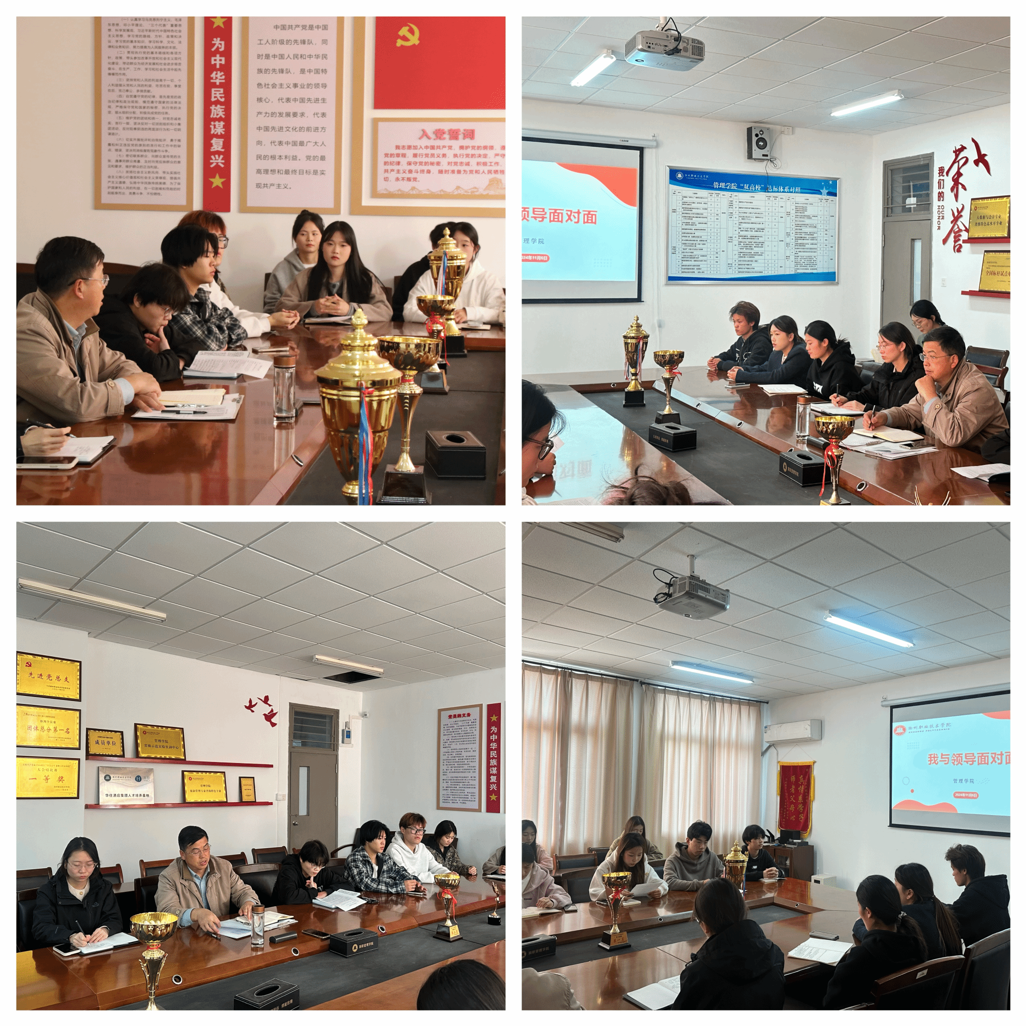 为进一步加强学院领导与学生之间的沟通交流,充分发挥同学们在学校的民主管理和民主建设中的积极作用,维护同学们的合法权益。11月6号下午,管理学院在一号楼院会议室开展“学生与领导面对面”座谈会。管理学院党总支书记耿学刚主持会议并讲话,管理学院团总支书记袁一及学生代表参加座谈会。