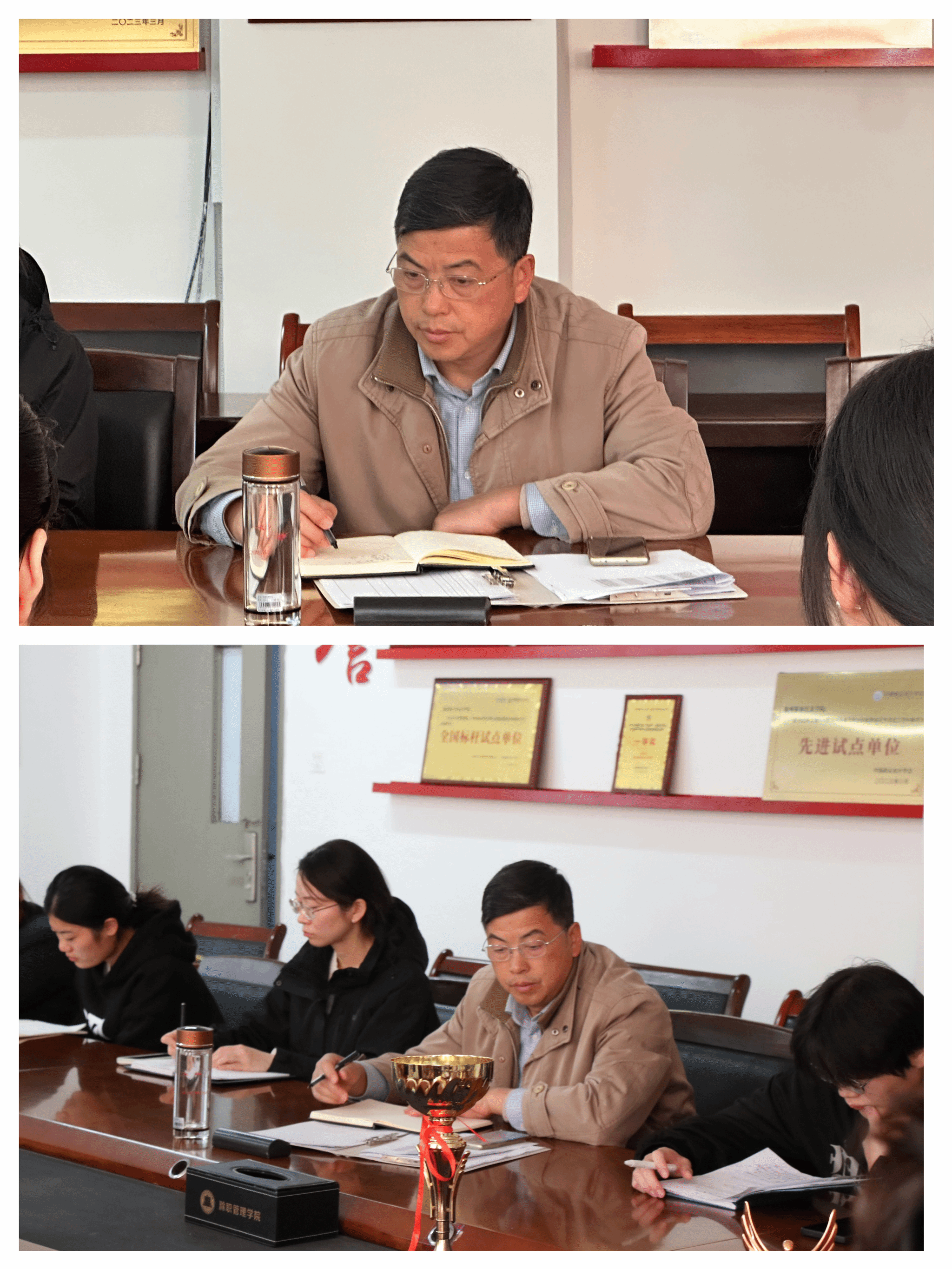 座谈会上,耿学刚首先表明开展此次座谈会的目的,并表明要从学生中了解当前学生在学习上、生活上存在的问题。会上,团总支和学生会的学生干事进行工作汇报,学生代表围绕教学管理、校园活动、学院服务等方面提出问题与建议。