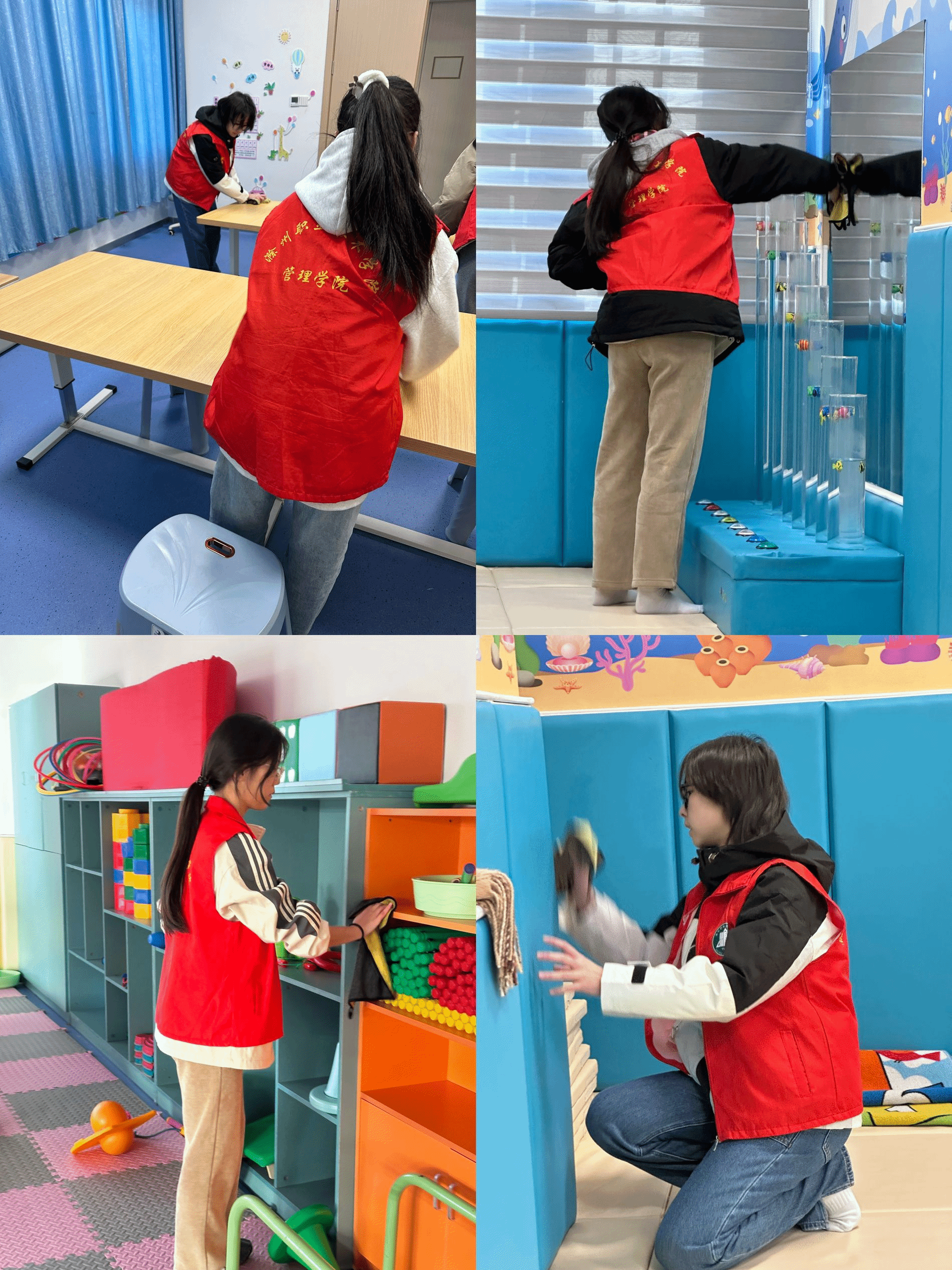 抵达医院后,志愿者们即刻投入卫生清洁工作,对儿童训练室、图书馆、病房等区域进行细致清扫,认真擦拭桌椅、清理地面杂物、整理物品摆放,力求打造一个整洁、舒心的环境,让孩子们能更好地生活与康复。