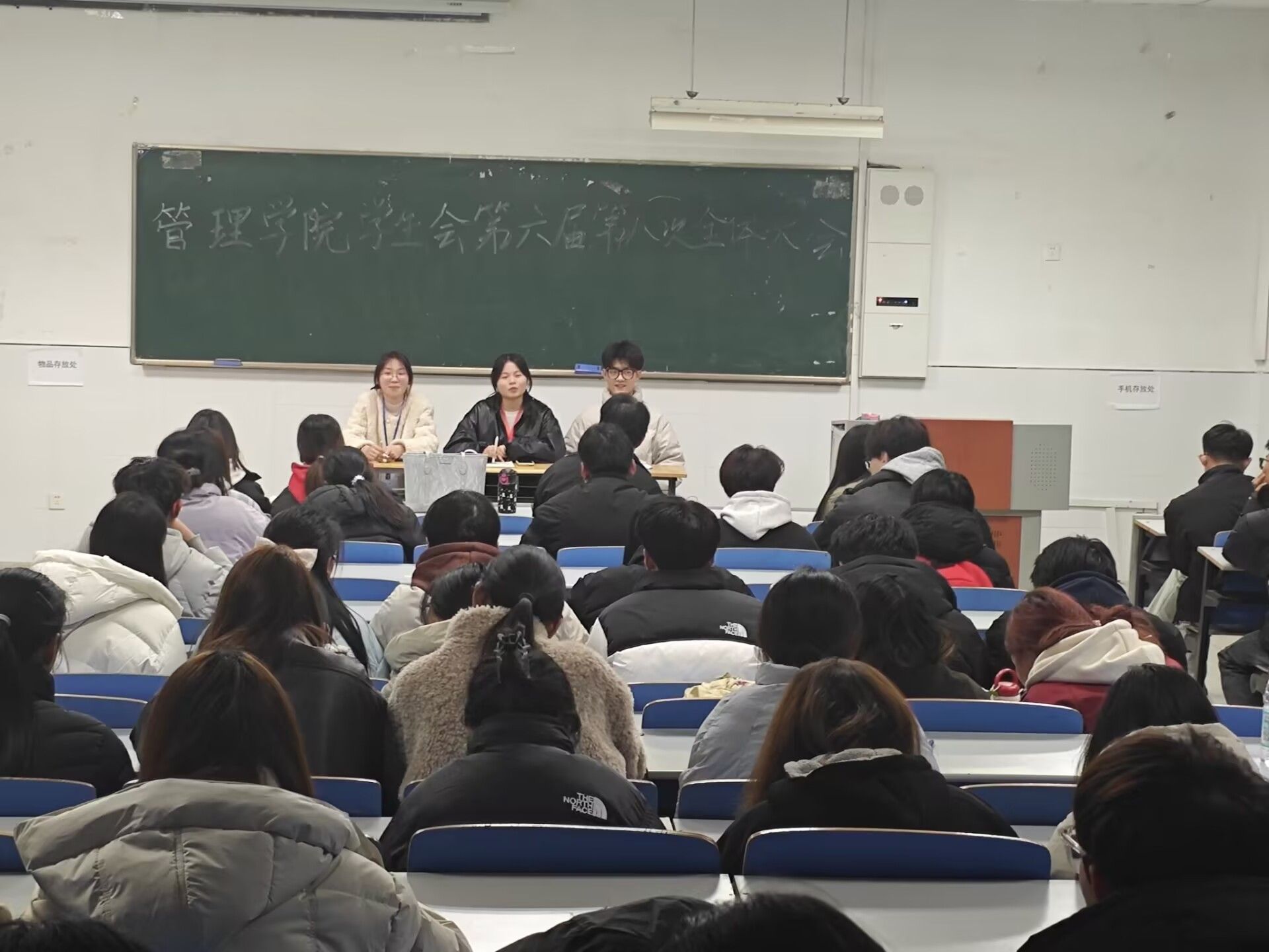 2025年3月4日,管理学院学生会在致真楼1101教室召开第六届第八次学生全体大会。