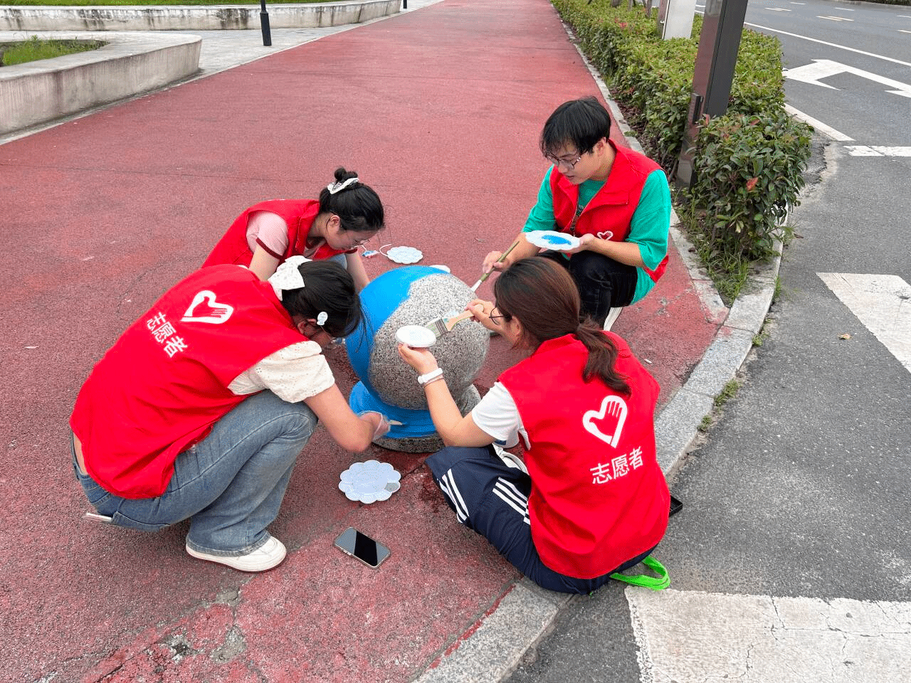 在“石墩焕彩——梦想与创意绘制石墩”活动中,志愿者们拿起画笔,在村庄的石墩上绘制出一幅幅充满梦想与创意的图案。有的石墩上画着可爱的卡通形象,有的描绘着美丽的自然风光,还有的展现了乡村振兴的美好愿景。这些色彩鲜艳、富有创意的石墩,不仅为村庄增添了一道亮丽的风景线,更激发了村民们对家乡的热爱之情和建设美好家园的热情。