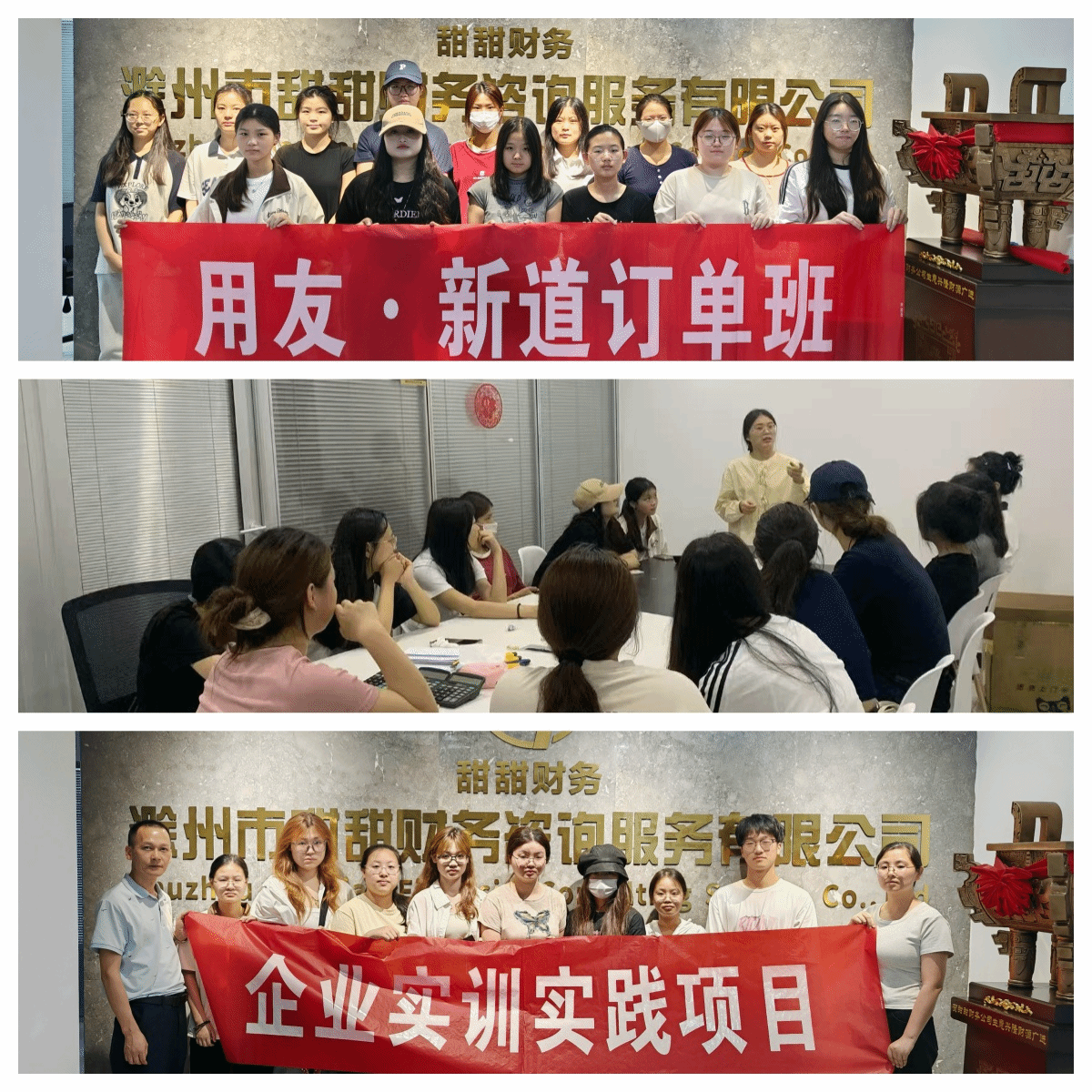 继2025年2月28日至3月4日在滁州市甜甜财务咨询服务有限公司圆满完成第一轮企业实践实训后,大数据与会计专业24级用友・新道订单班于2025年6月18日至2025年6月20日再次走进企业,开启第二轮实践实训项目。本次实训紧密围绕实践教学改革目标,深化校企合作,旨在进一步提升学生实操能力,为地方经济发展培育高素质财务人才。