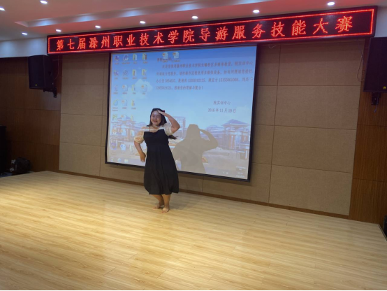 比赛持续了近四个小时,选手们积极展现自己的才艺。中文导游词讲解环节,选手们声情并茂,抑扬顿挫的进行讲解,且讲解重点突出、肢体语言丰富;英语环节选手们也是临危不乱,交流顺畅,仪态大方;才艺环节更是把本场比赛推向高潮,有舞蹈、唱歌、魔术、礼仪等多种表演,每位选手都拿出了自己最好的状态,既有感染性又有表现力。