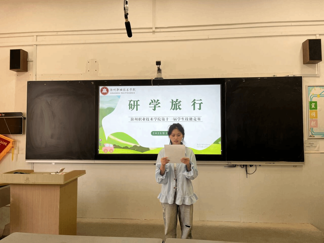 本次研学旅行赛项涵盖了丰富多样的内容,包括研学旅行理论知识测试、课程设计和单元汇报展示三个模块。在理论知识测试中,选手们展现出扎实的专业基础。课程设计环节,同学们充分挖掘滁州当地特色资源与教育需求,设计出了一系列独具匠心的研学课程。在单元展示部分,各参赛团队通过精美的PPT演示、生动的讲解以及现场模拟教学等方式,将自己设计的研学旅行产品全方位地呈现给评委。