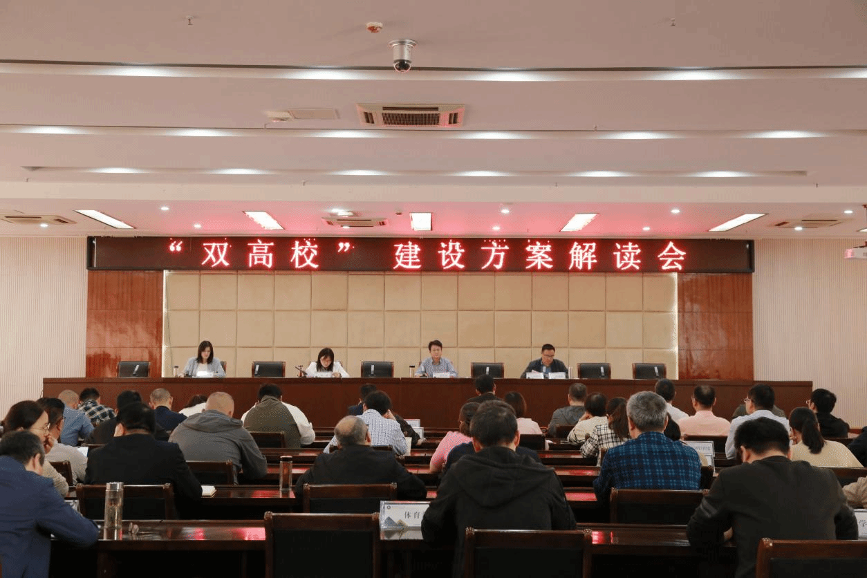 苏有良详细介绍了“双高校”建设背景,对“双高校”项目申报过程、申报结果、建设方案编制过程进行通报,强调“双高校”项目申报与方案编制时间紧、任务重,对申报及建设方案编制过程中主要参与人员辛苦付出表示高度认可,并对“双高校”建设提出三点要求,一是要深化认识,统一思想、齐抓共管,全方面达成共识,将“双高校”建设作为学校重点任务,以对学校事业高度负责的态度以及强烈的使命感来对待“双高校”建设,积极认领、高质量完成建设任务;二是要强化统筹,凝心聚力,通过深化激励机制,激发我们干事创业内生动力,切实汇聚“双高校”建设强大合力;三是要进一步正视差距,紧盯指标,切实以坚持不懈的态度攻坚克难,扎实推进内涵建设,早出、多出标志性成果,努力使“双高校”建设各项工作取得新进展、新突破。