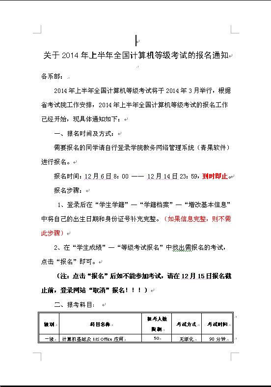 关于2014年上半年全国计算机等级考试的报名通知