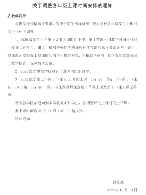 关于调整各年级上课时间的通知