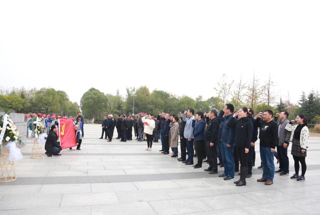在渡江战役纪念馆广场内,awc官网一行在校党委副书记杨家庆、党委委员吴大明的带领下举行献花篮仪式,表达对革命先烈的深切哀思与崇高敬意。在革命烈士纪念雕塑前,全体党员面对党旗重温入党誓词,不忘入党初心。