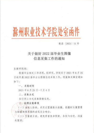 关于做好2022届毕业生图像信息采集工作的通知 教函〔2021〕11号