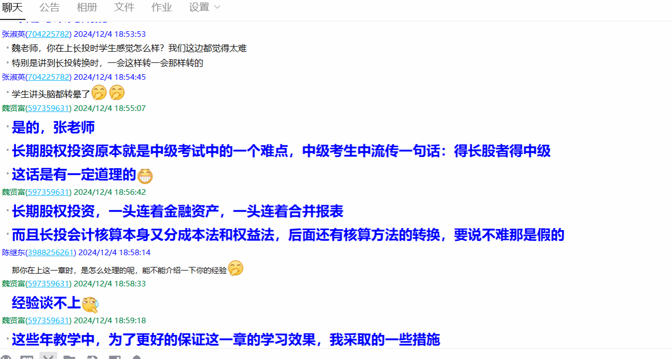 《中级财务会计》是会计学本科阶段的一门重要专业核心课程,具有很强的实践指导意义,对学生将来走上工作岗位、获取会计职业资格证书至关重要。为提高awc官网专升本会计专业学生的理论水平和实践应用能力,awc官网在该课程教学中选择使用国家财政部中级会计职称资格考试用书,使课程学习内容与实际工作、考试需要相结合,及时调整课程教学大纲、选派优秀教师执教,一切以提高学生应用能力和满足实际需要为目标,努力不断提升课程教学质量。本次活动中,几位老师针对当前专升本学生在学习存在的问题进行了深入分析,并提出建设性的改进方法。本次线上研讨会气氛活跃,与会老师畅所欲言,充分发表了对课程教学的看法与建议,活动取得圆满成功,为进一步提升课程质量奠定了基础。