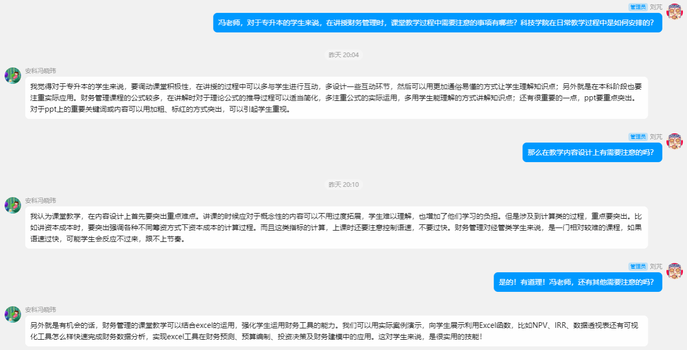 交流会上,教师们结合专升本学生的特点以及当前用人单位的实际需求,对中级财务管理课程的结构性重组、教学方法创新等方面进行了深入的交流。双方分享了在教学过程中的经验与心得,针对课程在人才培养方案中的定位以及与前后衔接课程的关系等问题,进行了细致的研究与探讨。