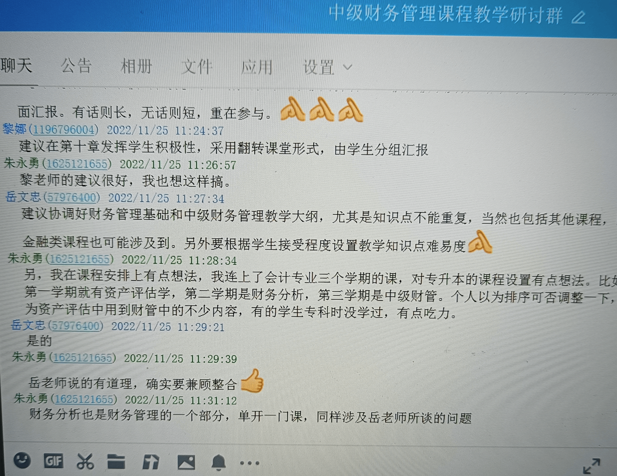 相关教师通过电话尤其是QQ在线等方式,结合专升本学生的自身特点和当前用人单位的实际需求,对该门课程的结构性重组、教学方法等进行了广泛而深入的交流。对该课程在人才方案中的定位以及前后衔接课程问题也进行了研究探讨。通过这次研讨,授课教师充分交流了教学感受和想法,相互启发,最后形成汇总材料,提交教学系部作为修订会计学专业人才培养方案的重要参考资料。