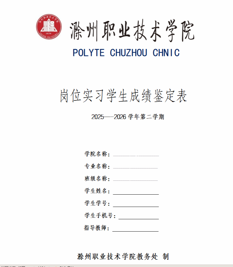 2026届毕业生岗位实习成绩鉴定表(模板)