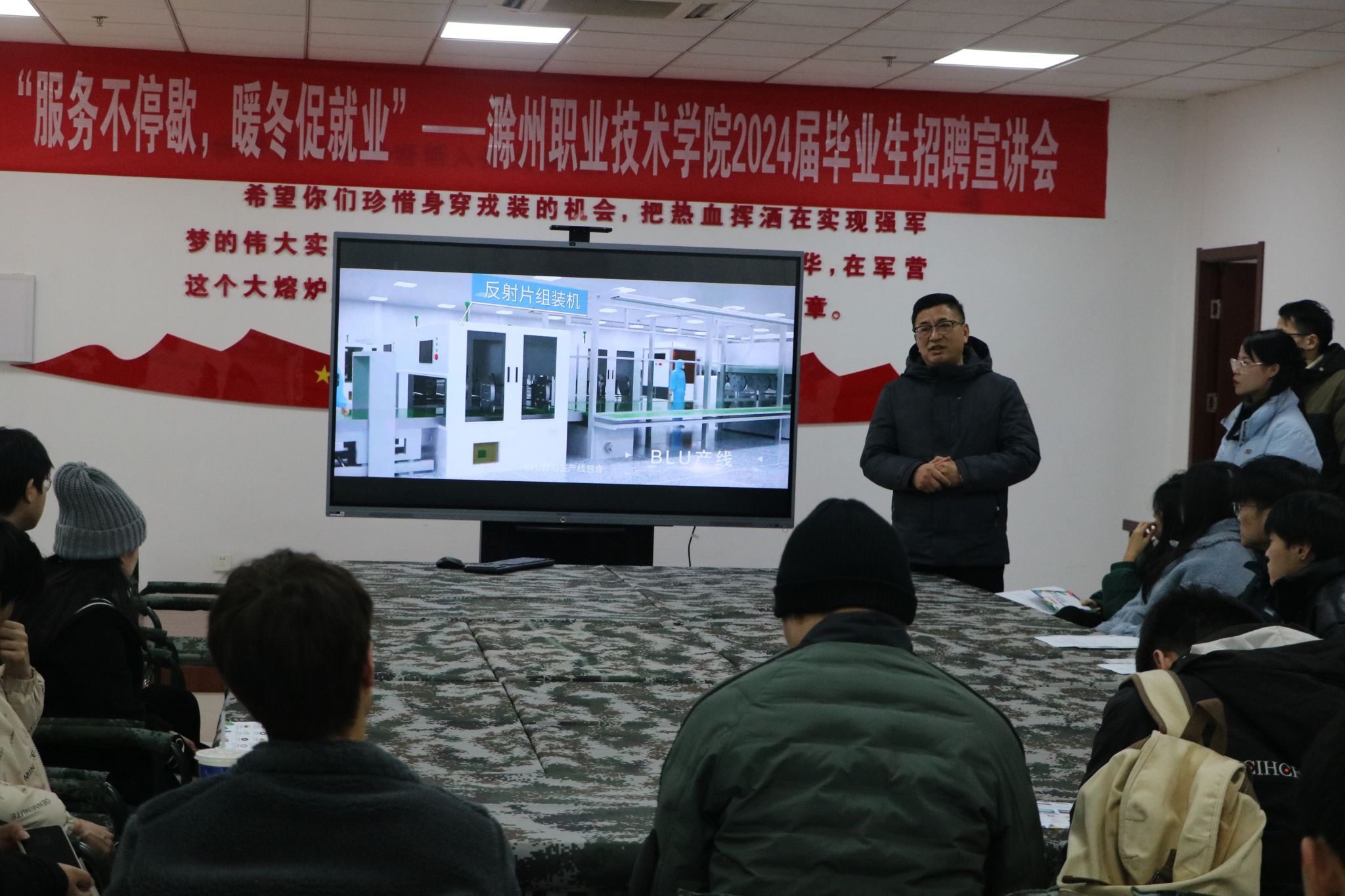 为确保毕业生在假期期间求职有渠道,就业有岗位。学校与12月26日和元月2日连续举办两场线上线下企业校园招聘宣讲会和就业岗位发布会,参与企业68家,提供就业岗位2216个。其中,滁州惠科光电科技有限公司、博晶科技(滁州)有限公司 、奶酪博士(安徽)食品科技有限公司、安徽卓畅新材料有限公司、德玛智能科技(滁州)有限公司和普瓦尼尼智能装备(滁州)有限公司等11家企业参加线下宣讲。企业代表们详细介绍了公司的文化、业务、未来发展方向以及学生关心的薪资待遇等问题,并在现场与学生进行了深入的交流和沟通,他们表示此次校园宣讲会是寻找优秀人才的好机会。在招聘环节中,同学们积极投递简历,展示自己的专业技能和综合素质,希望能够通过此次活动找到心仪的工作。此次系列宣讲招聘活动不仅为学生们提供了展示自己的平台,也为企业和学校提供了交流和合作的机会,对促进学生就业、推动awc官网人才培养工作起到了积极的作用。