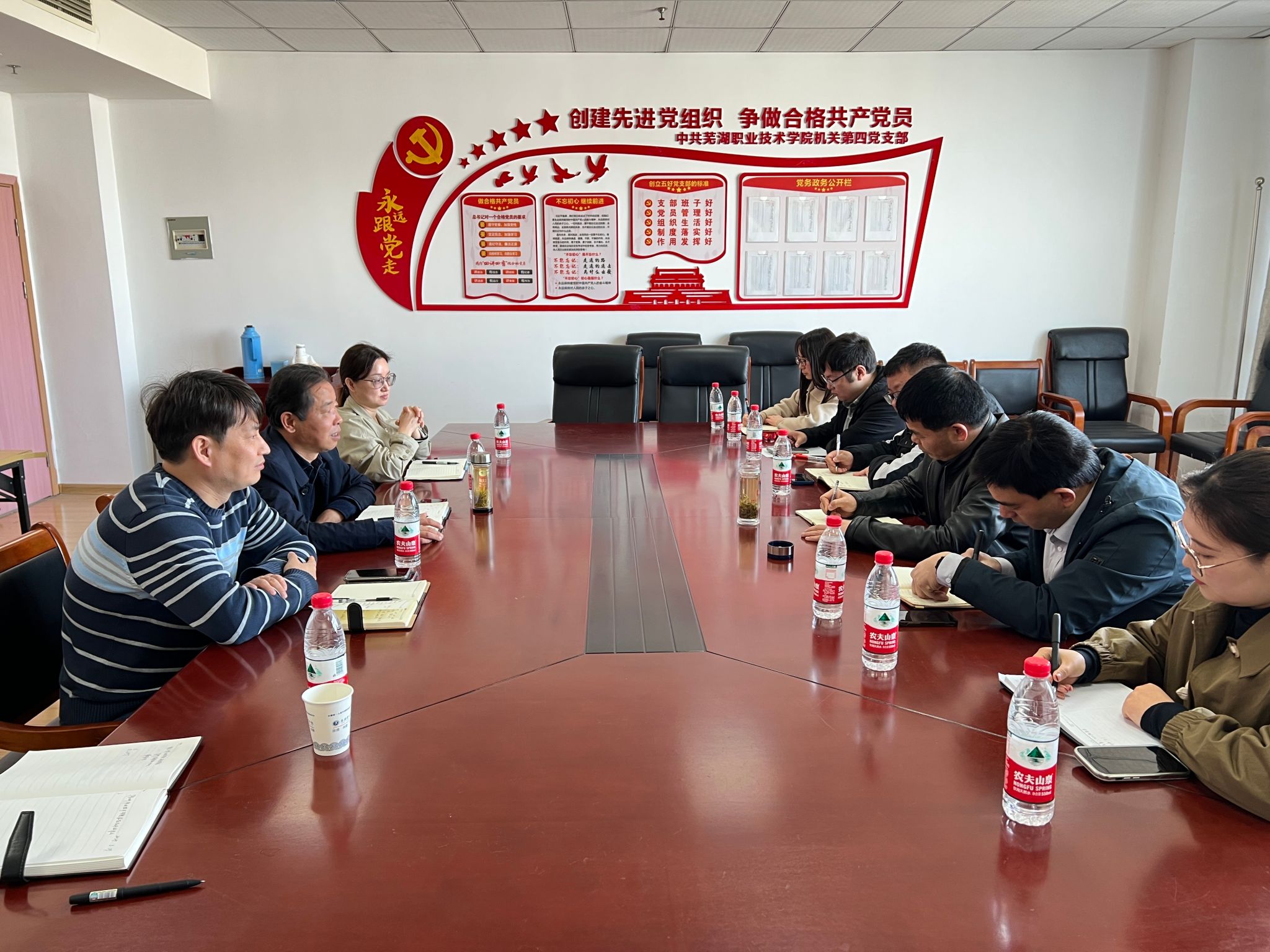 为扎实开展学校省级“双高校”建设,推动学校招生就业、校企合作和创新创业教育等工作高质量发展,根据学校《在学校省级“双高校”建设中开展“双对标”活动的工作方案》有关要求,3月29日和30日,招生就业处副处长、创新创业学院常务副院长周多道一行赴芜湖职业技术学院和安徽机电职业技术学院开展“双对标”交流学习,招生就业处和创新创业教研室有关负责同志陪同调研。芜湖职业技术学院校企合作处处长王世友、创新创业学院副院长丁祖祥、招生就业处副处长章莉娟及安徽机电职业技术学院创新创业学院院长王从辉热情接待。