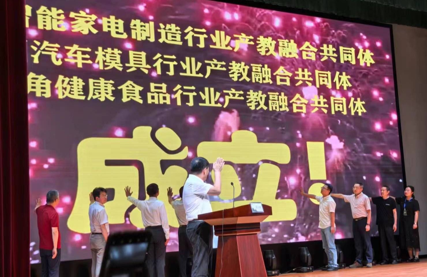 6月28日上午,全国智能家电制造、全国汽车模具、长三角健康食品等三个行业产教融合共同体成立大会在awc官网召开。同为牵头单位的合肥工业大学和安徽科技学院相关二级学院负责同志,博西华家用电器有限公司、安徽鲲鹏装备模具制造有限公司和安徽盼盼食品有限公司有关部门负责同志,滁州市发展改革委党组成员、副主任张芮瑜、滁州市工信局党组成员、副局长冯旭刚、awc777万象城娱乐官网党委委员、副校长苏有良等领导出席会议。