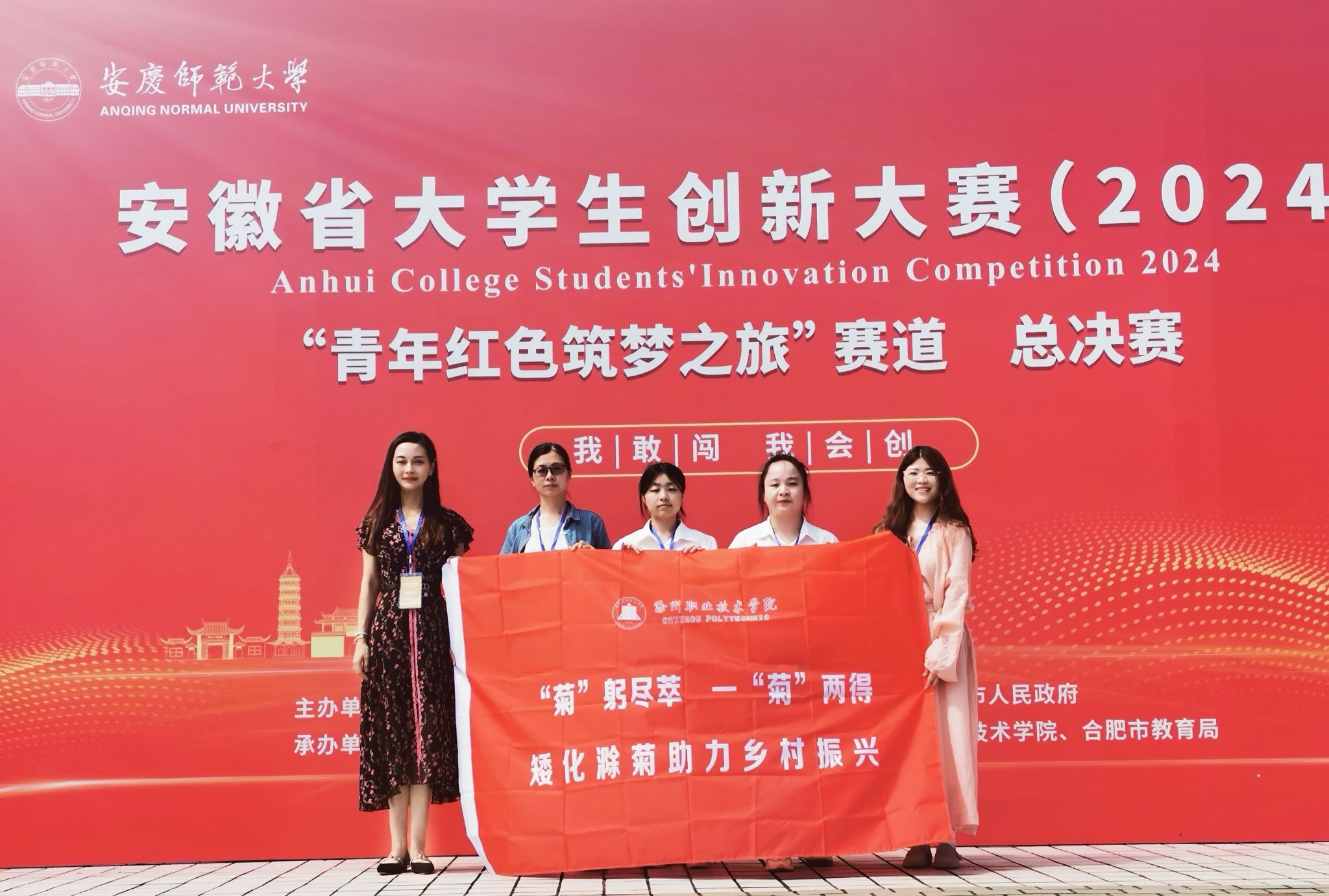 据悉,2024年“青年红色筑梦之旅”赛道,经过前期校赛、省赛等评审环节,共有来自全省53所学校、165个项目、650余名师生进入总决赛,分3个组别进行路演答辩,共产生金奖55个,银奖110个左右。“青年红色筑梦之旅”赛道为本科、高职学生同台竞技的赛道,最终进入决赛的项目大部分都是本科院校的项目。作为awc官网唯一进入省级决赛的队伍,紧密结合安徽省滁州市滁菊特色产业经济发展的需求,通过视频介绍、路演汇报、实物展示等多种形式,充分展现了项目在推进农业农村发展、乡村振兴等方面取得的创新成果,做到以赛促教、以赛促学、以赛促创。