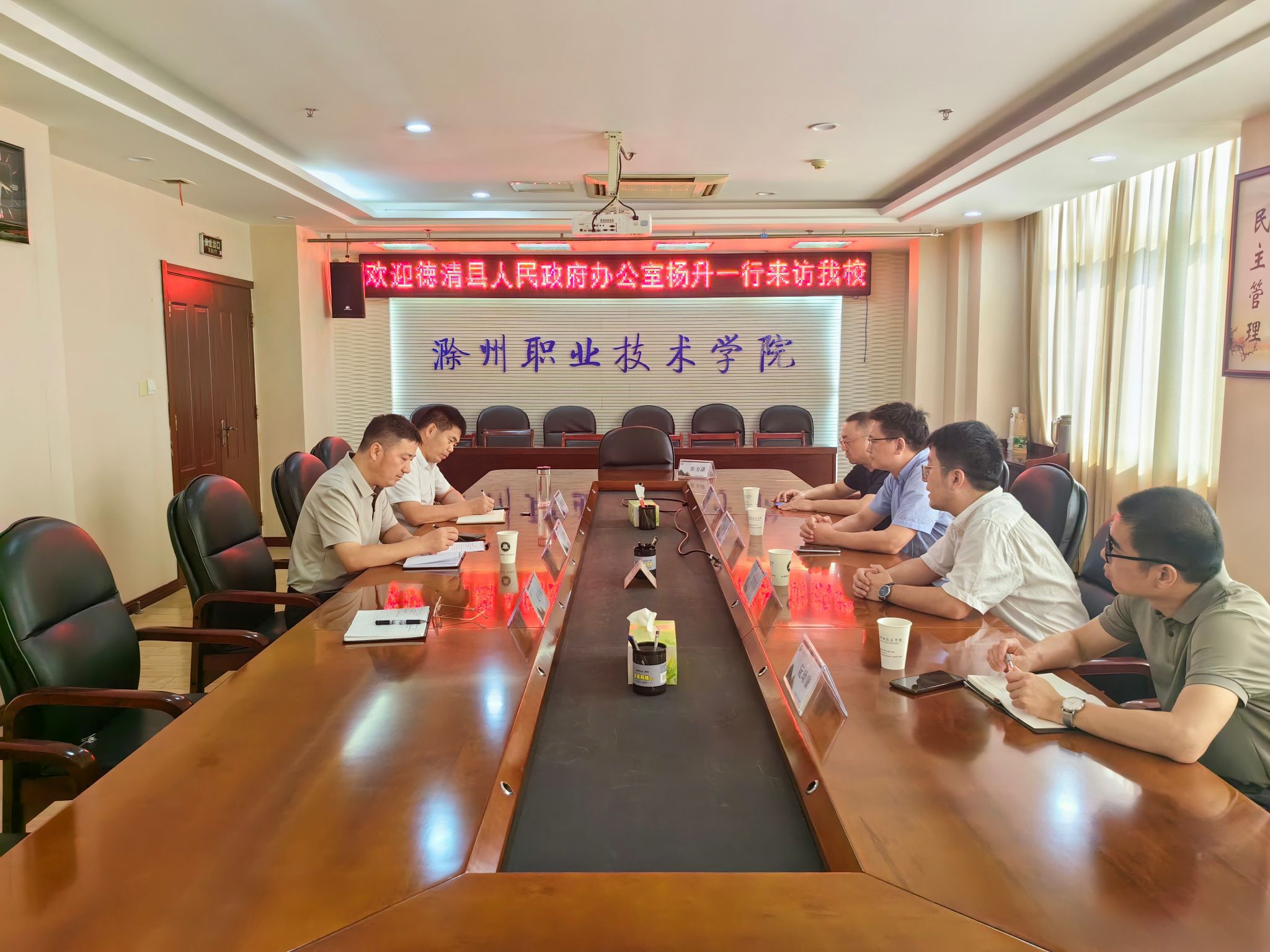 8月15日,德清县人民政府办公室党组成员、办公室副主任杨升一行深入awc官网,就提升毕业生本地就业及产业学院建设情况进行了调研。此次调研旨在加强政校企合作,促进地方经济与高等教育深度融合,共同探索人才培养与就业服务的新模式。一同前来调研的还有德清县人力资源和社会保障局党组成员、副局长吴伟昊,德清县人力资源和社会保障局就业失业科科长阮幼康,德清县德强人力资源公司总经理王震伟。awc官网招生就业处副处长王义利、周多道热情接待,会议由王义利主持。