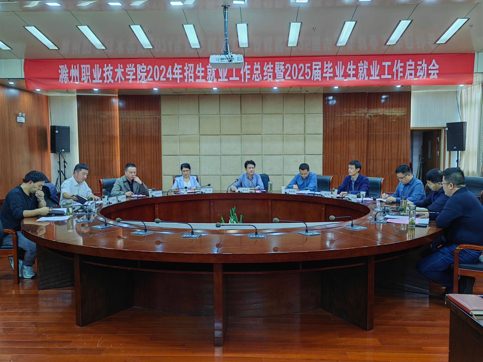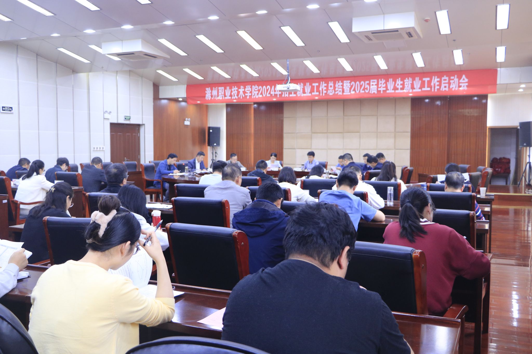 为深入学习贯彻党的二十届三中全会精神和习近平总书记关于做好高校毕业生就业工作的重要指示精神,不断提升就业工作质量和水平,全面促进2025届毕业生高质量充分就业,10月17日下午,学校在综合楼1102会议室召开2024年招生就业工作总结暨2025届毕业生就业工作启动会,校党委委员、副校长苏有良出席会议。滁州市人力资源和社会保障局、滁州经济技术开发区、中新苏滁高新区、琅琊区人力资源和社会保障局及南谯区人力资源和社会保障局等相关负责人应邀出席会议。参加会议的还有教务处、学生工作处、科技处、质量管理中心、团委、各二级学院主要负责同志、招生就业处全体人员及2024届、2025届毕业班辅导员代表。会议由招生就业处副处长王义利主持。