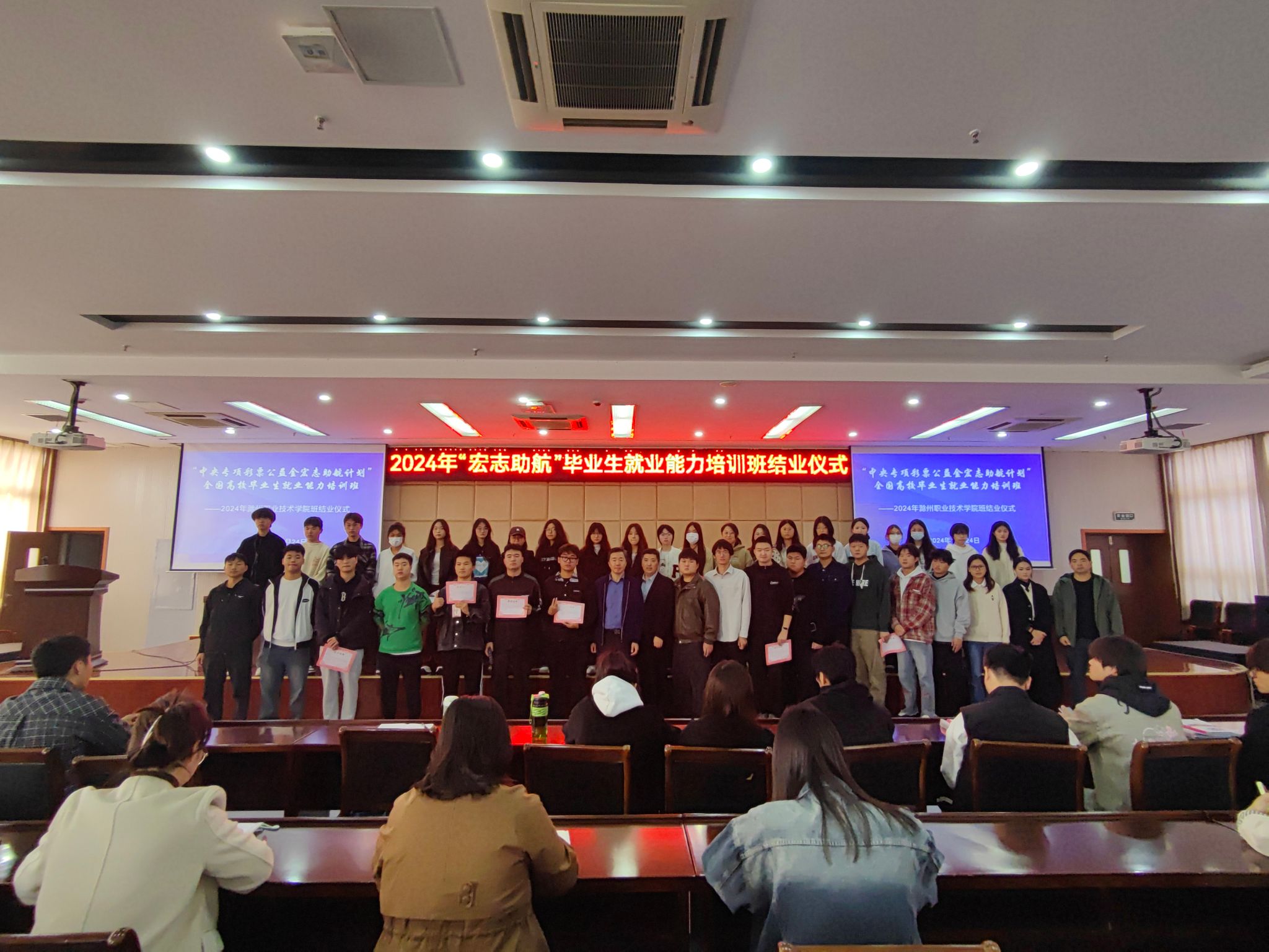 2024年10月24日上午,“中央专项彩票公益金宏志助航计划”全国高校毕业生就业能力培训班awc777万象城娱乐官网班结业仪式在awc官网综合楼5楼报告厅成功举办。校党委副书记杨家庆出席仪式,各二级学院就业工作负责人、辅导员和学生代表,招生就业处相关负责同志等200余人参会,仪式由招生就业处副处长王义利主持。