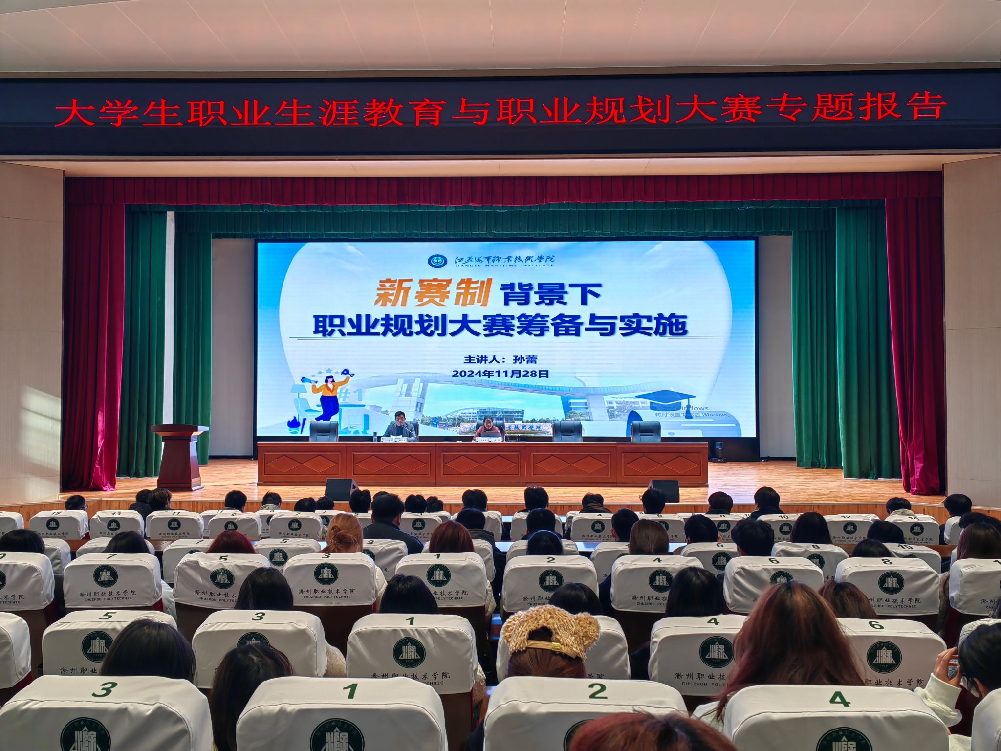 为提高赛事质量,11月28日下午,学校邀请全球职业规划师(GCDF)、全球生涯教练(BCC)、中华职教社职业生涯指导委员会委员、全国大学生创新创业大赛评委、江苏海事职业技术学院副教授孙蕾来校作大学生职业生涯教育与职业规划大赛专题报告会。约400名参赛指导教师和学生到现场聆听了报告,会议由招生就业处副处长徐云龙主持。