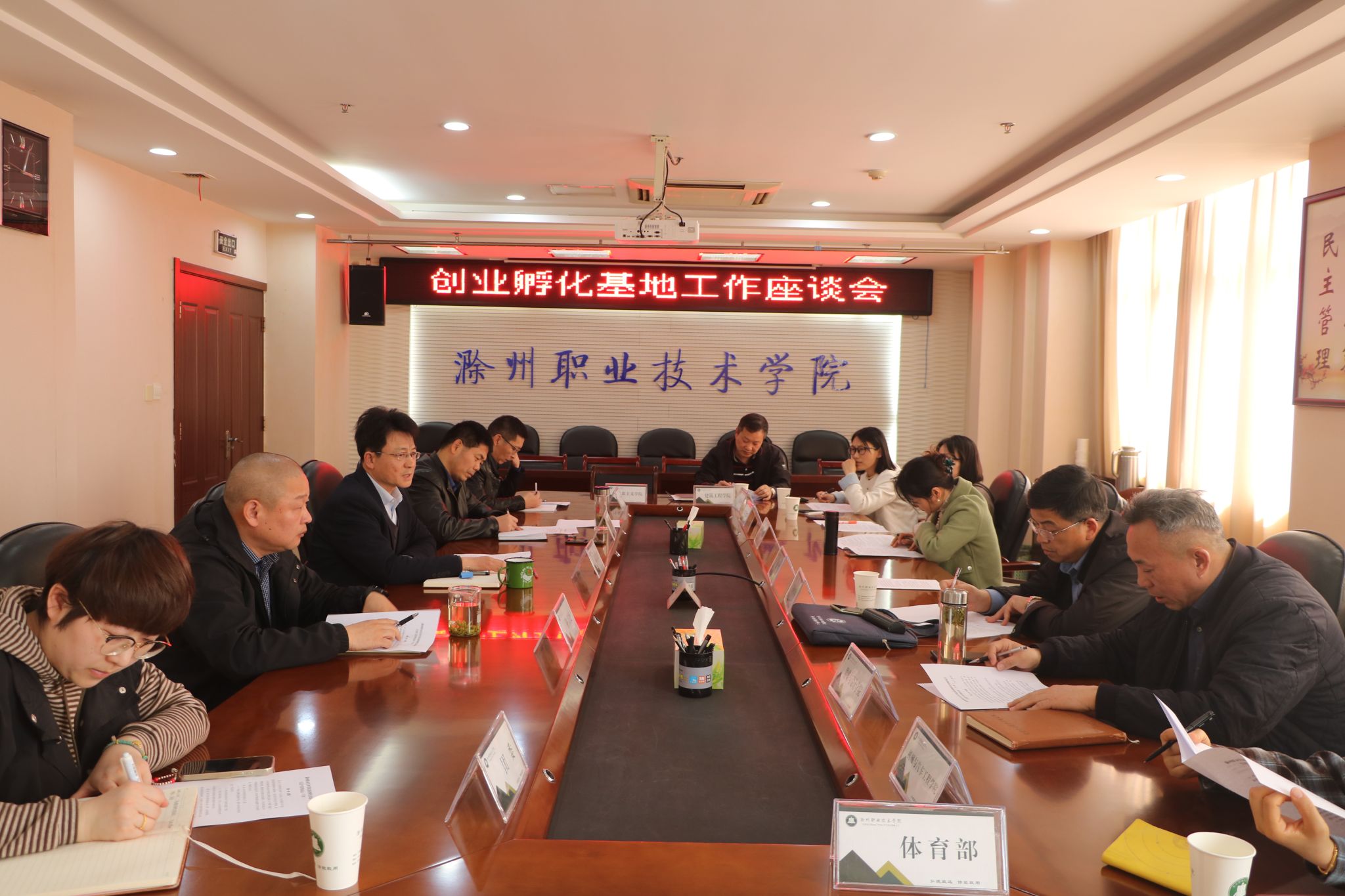 会上,创新创业学院负责人周多道领学了国家关于高校创新创业教育的系列政策和要求,介绍了学校创新创业教育体系和孵化基地建设情况及取得的成效,围绕存在的困难和问题解读了正在修订的孵化项目管理办法,对近期孵化基地项目遴选、入驻工作做出了安排。