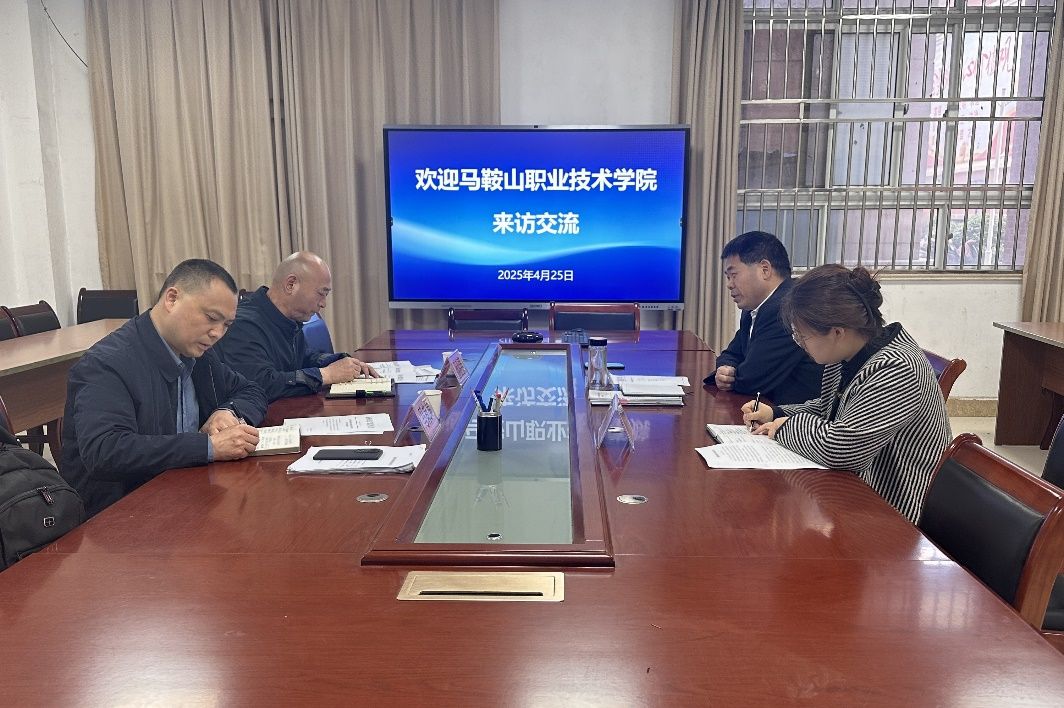4月25日上午,马鞍山职业技术学院实验实训中心副主任孙明春、马有昂一行来awc官网考察交流市域产教联合体申报建设等工作。校企合作办主任周多道和相关工作人员参与交流。