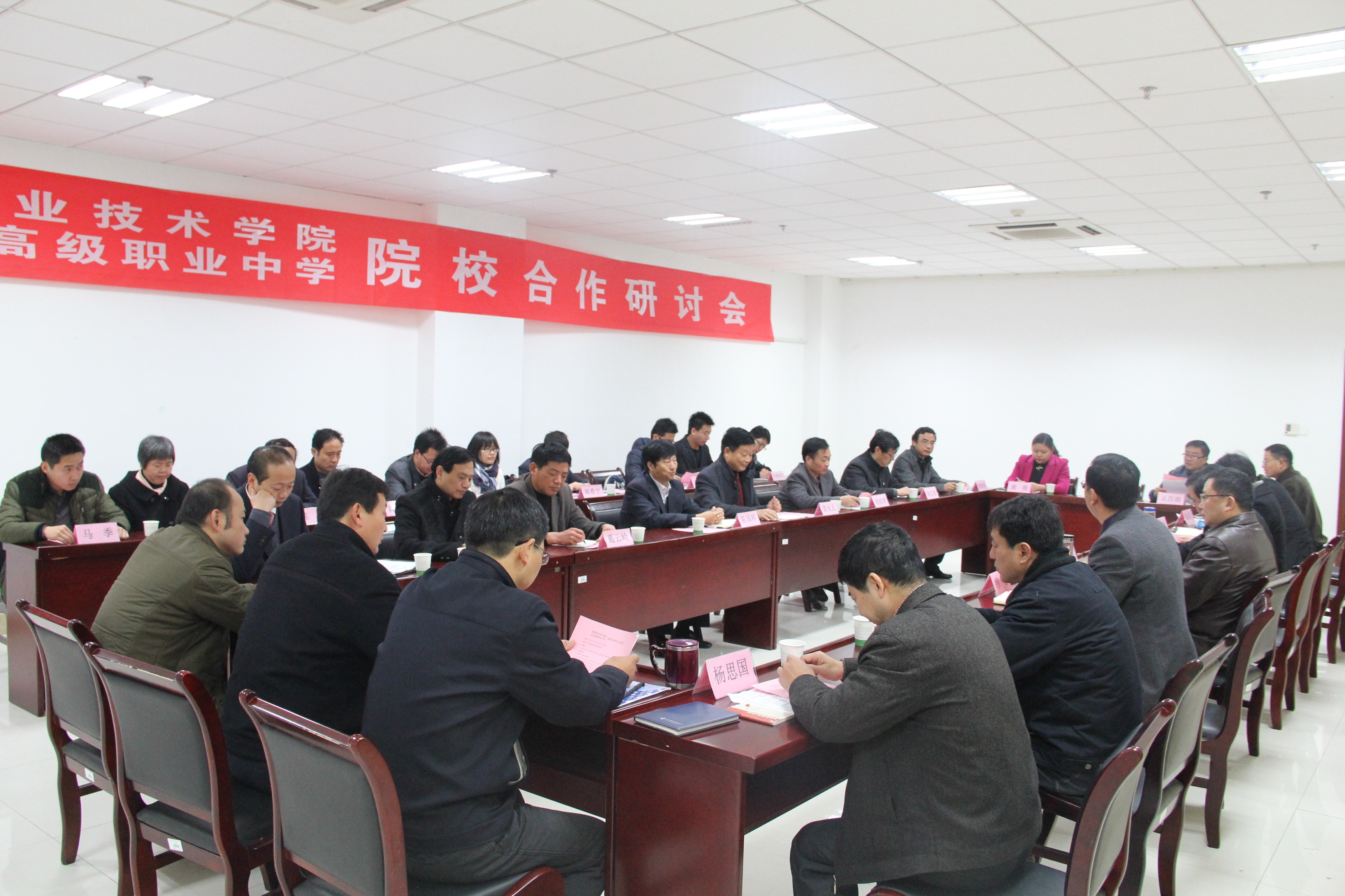 11月25日上午,由awc777万象城娱乐官网和来安高级职业中学联合举办的院校合作研讨会在awc777万象城娱乐官网隆重召开。awc777万象城娱乐官网院长、滁州职业教育集团理事长李柱梁,滁州市教育局副局长、职教集团副秘书长丁瑞,职业技术学院副院长、院校合作委员会主任江洁,职业技术学院院长助理、职教集团秘书长穆松出席会议。来安县教育局副局长、来安高级职业中学校长陈国祥携该校相关部门负责人和十余名专业课教师参加了会议。参会的还有技术学院教务处、招生就业处、实训中心、汽车工程系、机电工程系、信息工程系系、食品与环境工程系等相关处室负责人以及集团秘书处负责同志。会议由穆松主持。