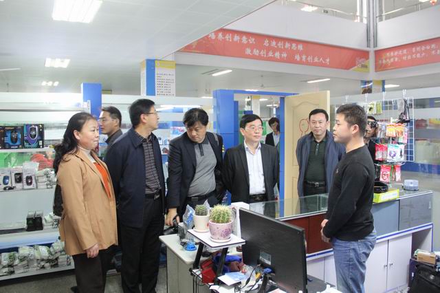 马莉莉一行在学院领导的陪同下参观学院大学生创业孵化基地