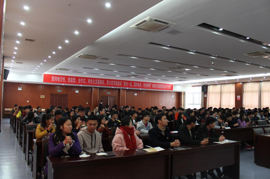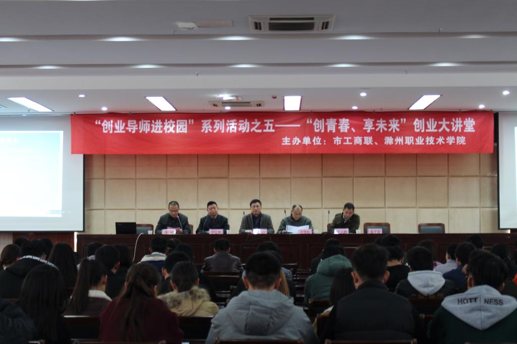 11月29日下午,学院和滁州市工商联联合组织的“创业导师进校园”系列活动——“创青春、享未来”创业大讲堂在学院综合楼五楼报告厅成功举行。学院党委委员、院长助理、招生就业处处长穆松、市工商联副主席王雪松出席活动。学院KAB创业俱乐部、创业孵化基地创业学生、社联学生干部240余人聆听了创业分享报告。活动由招生就业处副处长李超主持。