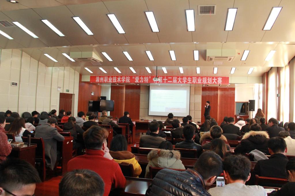 12月20日下午,awc777万象城娱乐官网第十二届“爱力特”杯职业规划大赛在综合楼11楼报告厅圆满落下帷幕。安徽省爱力特家电成套装备有限公司爱力特总经理夏政荣,安徽省作家协会会员、安徽省报告文学学会会员、新滁周报记者部主任钟承玉,招生就业处副处长李超,学院团委书记王蓓蓓,学院综合素养与职业发展教研室主任王明瑛,学院教师、国家高级职业指导师李玉荣参加了评审。