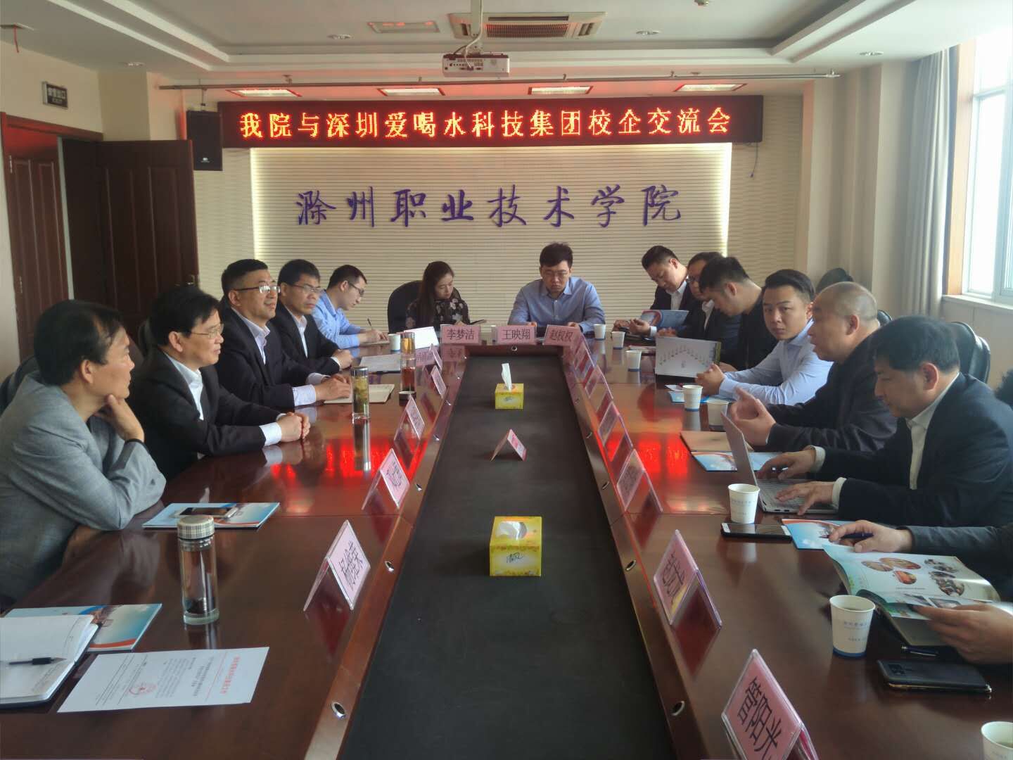 李柱梁代表学院对杨礼军一行表示热烈欢迎,并表示爱喝水集团选择在滁州投资创业的规划是有眼光和睿智的,特别是滁州交通便捷,辐射面广,物流成本低,对企业的发展起到了关键的作用。