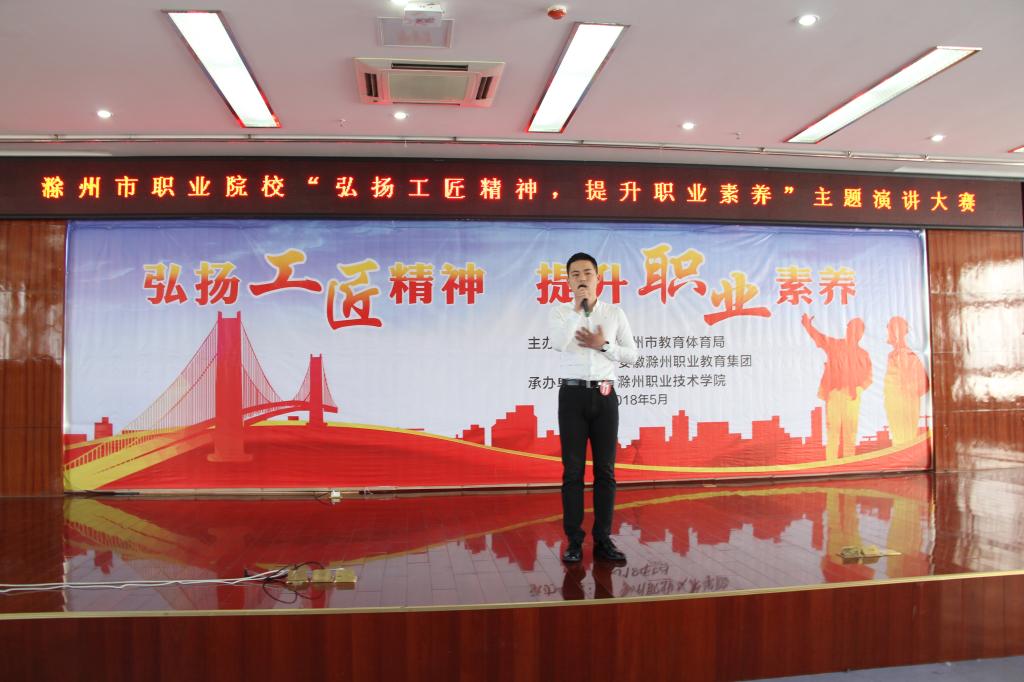 为认真贯彻落实《教育部关于深化职业教育教学改革全面提高人才培养质量的若干意见》,弘扬新时代工匠精神,全面提升学生职业素养,展示我市职业教育发展成果和职业院校学生风采,丰富学生生活,2018年5月9日,由滁州市教育体育局和安徽滁州职业教育集团联合举办的滁州市职业院校“弘扬工匠精神,提升职业素养”主题演讲大赛在awc777万象城娱乐官网成功举行。大赛吸引了11所院校的21名选手参加。