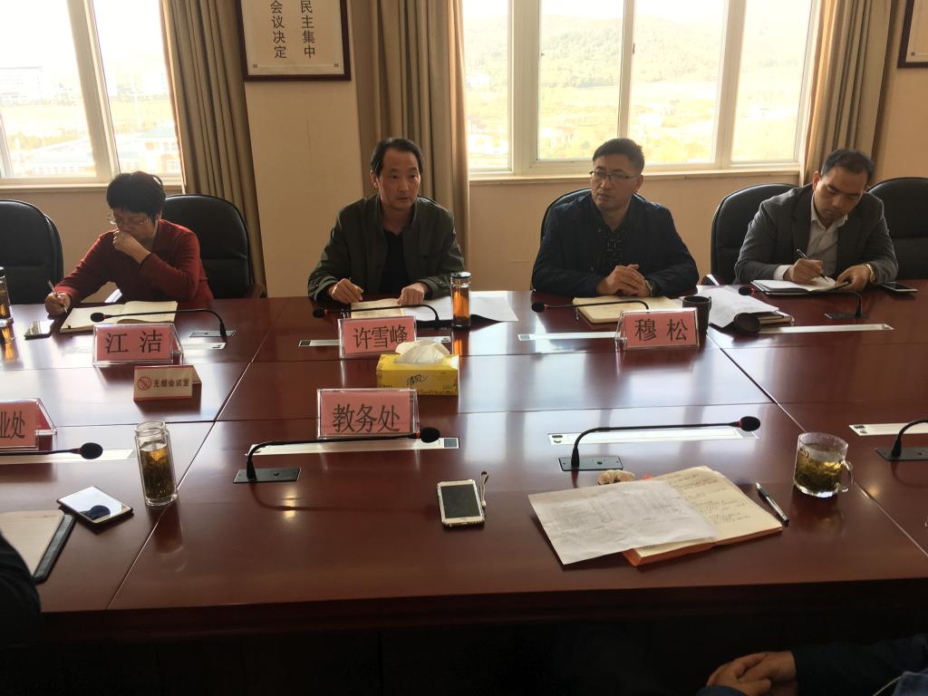 10月31日上午,学校毕业生本地实习就业工作务虚会在综合楼904会议室召开,校党委副书记、校长许雪峰,校党委委员、副校长江洁,校党委委员、校长助理、招生就业处处长穆松出席会议,教务处及招生就业处相关人员参加了会议。