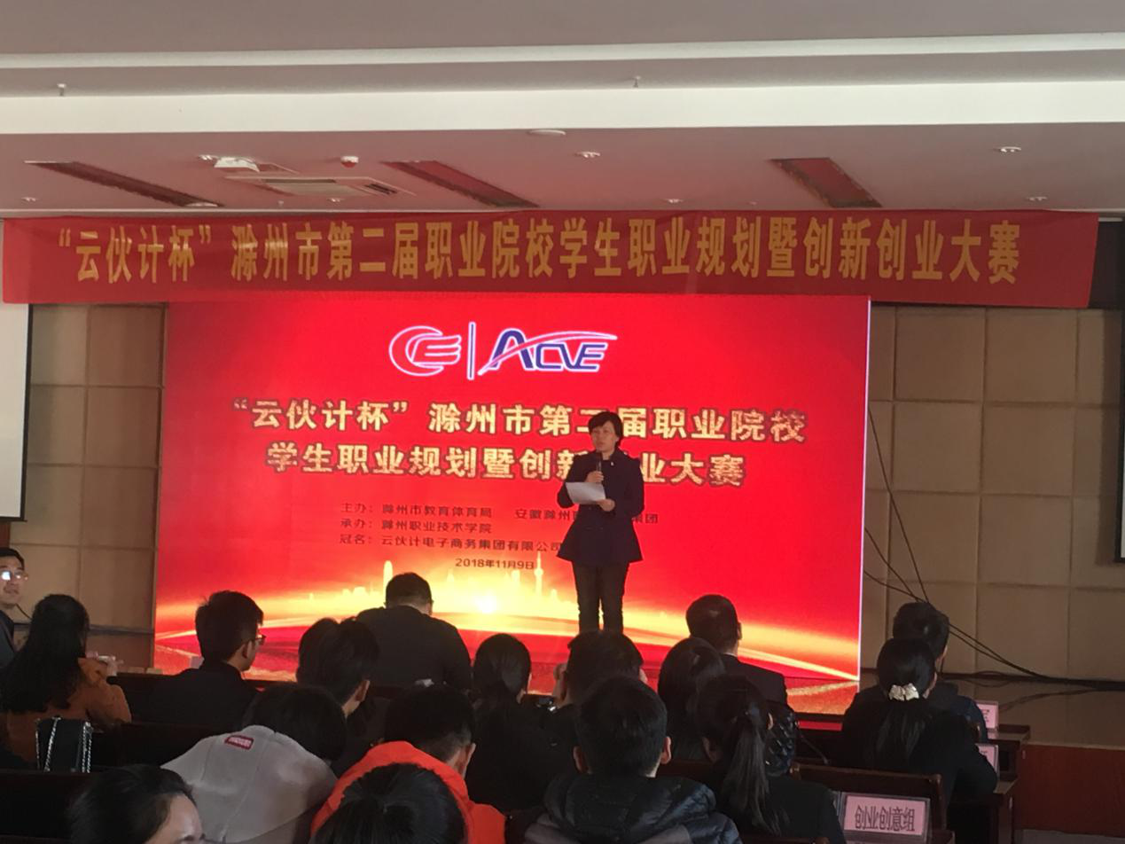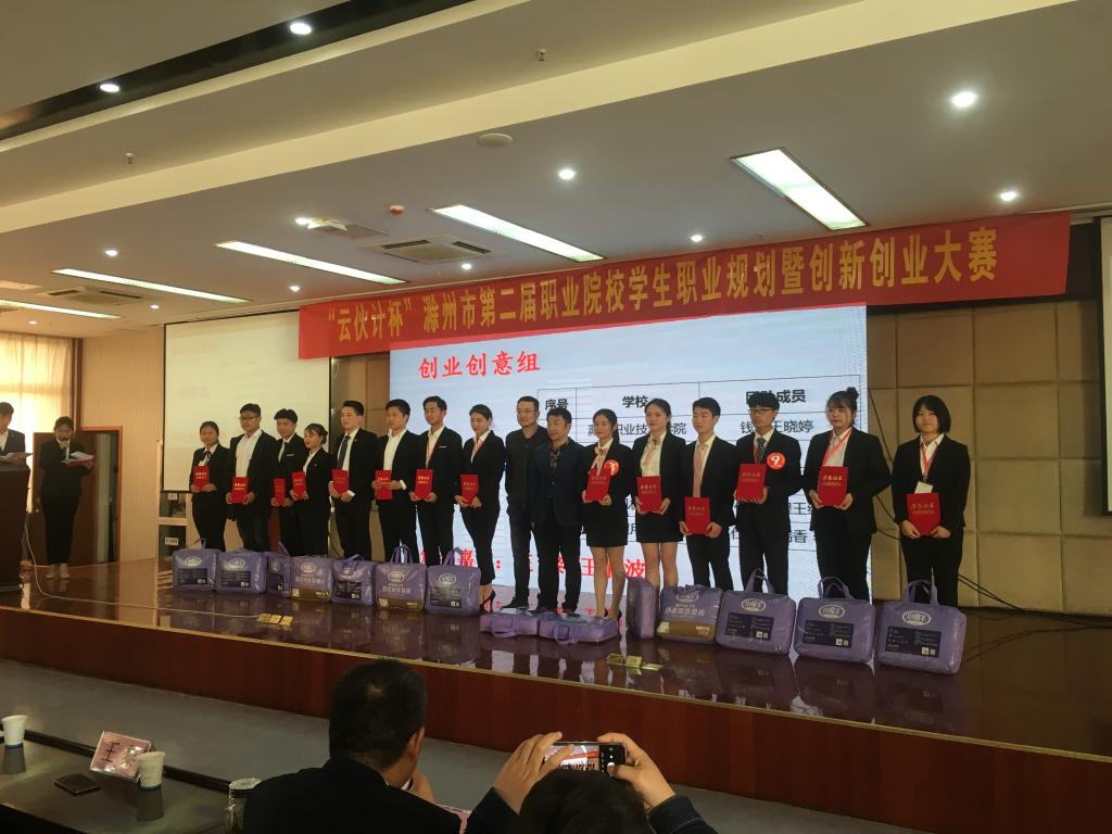 11月9日下午,由滁州市教育体育局和安徽滁州职业教育集团联合主办的“云伙计杯”滁州市第二届职业院校学生职业规划暨创新创业大赛在awc官网落幕。安徽滁州职教集团秘书长、awc777万象城娱乐官网党委委员、校长助理穆松,安徽滁州职教集团副秘书长、滁州市教育体育局副局长王莉,云伙计电子商务集团有限公司董事长王黎等嘉宾亲临现场观摩比赛并为获奖选手颁奖。
