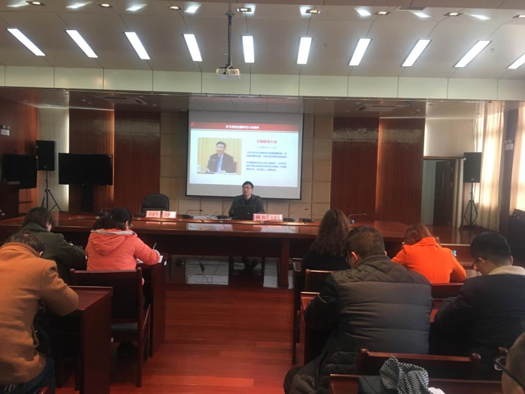 12月20日,校党委委员、校长助理穆松在综合楼11楼报告厅宣讲全国教育大会精神,食环系、成教处、招就处全体教职工参加,报告由食环系主任梁建军主持。