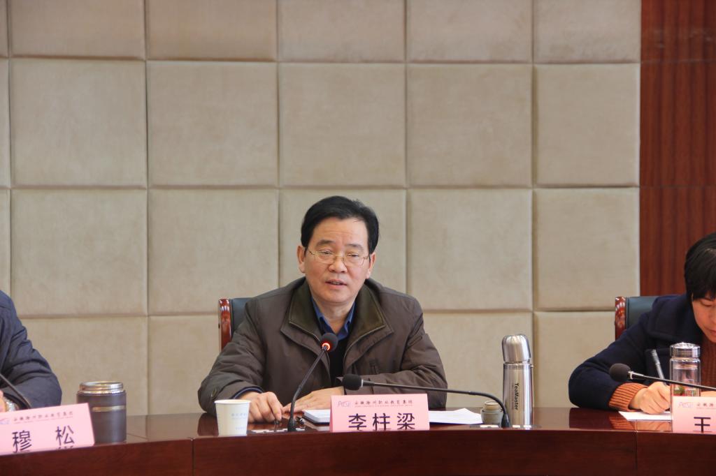 李柱梁在会上首先代表理事长单位对新加入职教集团的理事单位表示欢迎,对5年多来积极参与职教集团工作的成员单位表示感谢,并重点说了三个方面。一是提高对职教集团性质、作用和影响的认识,强调职教集团是推进产教融合、协同育人和服务发展的平台;二是对成员单位提出几点建议,强调“四个积极”,即积极参与、积极配合、积极谏言、积极交流,进而推进职教集团各项工作;三是对秘书处提出四点要求,强调了“四个好”,即组织好、协调好、服务好、宣传好职教集团的各项工作。