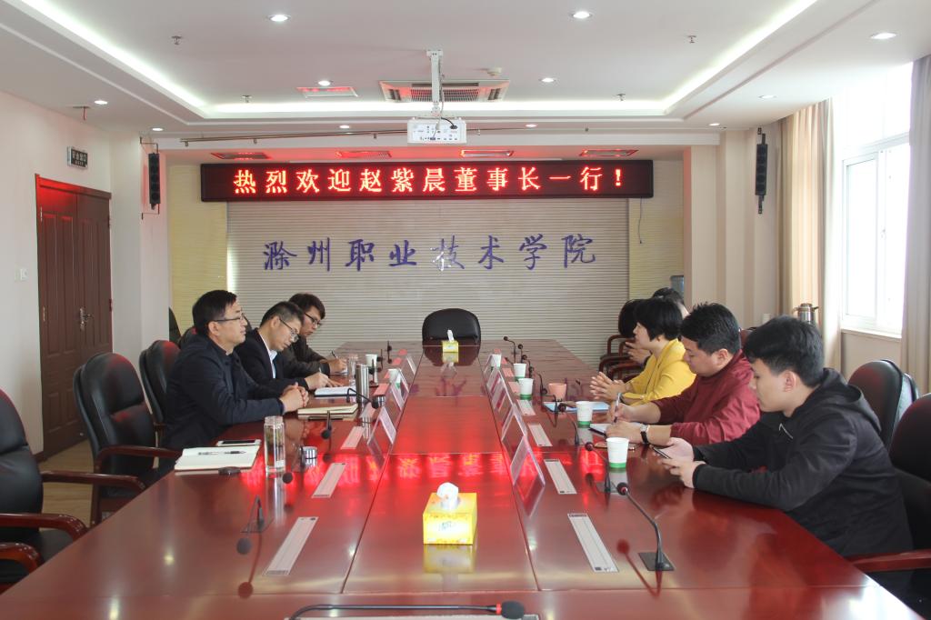 业务洽谈座谈会上,穆松首先代表学校热情欢迎赵紫晨一行,并介绍学校在创新创业教育、校企合作、人才培养以及滁州人文、经济等方面基本情况。赵紫晨女士从国家经济战略发展、创新创业人才培养和企业转型升级等方面介绍双创教育的重要性。