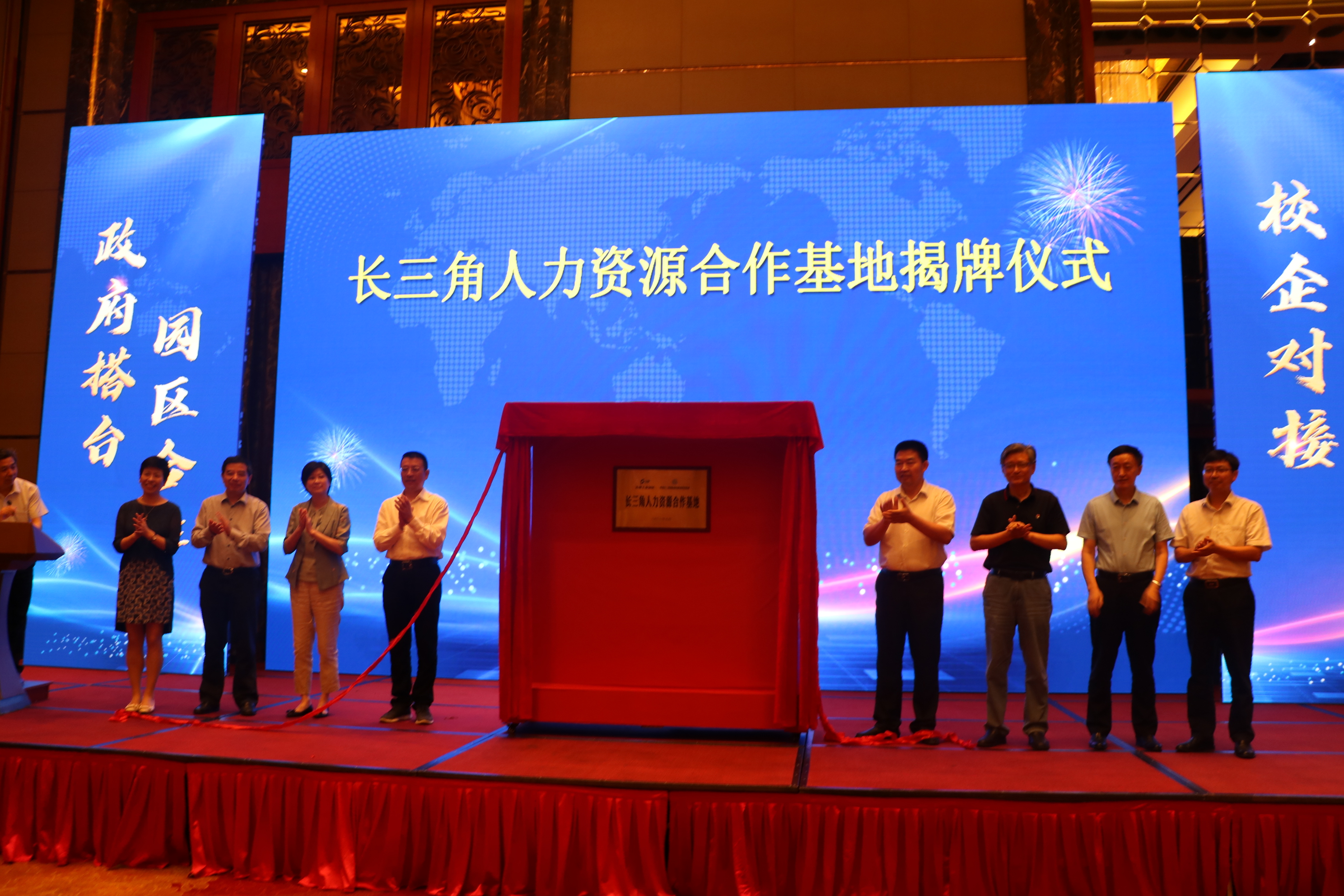 最后,中国长三角国际商务职业教育集团、苏州工业园、安徽省职教集团联盟和职教集团、安徽国际商务职业教育集团的领导共同为“长三角人力资源合作基地”授牌。