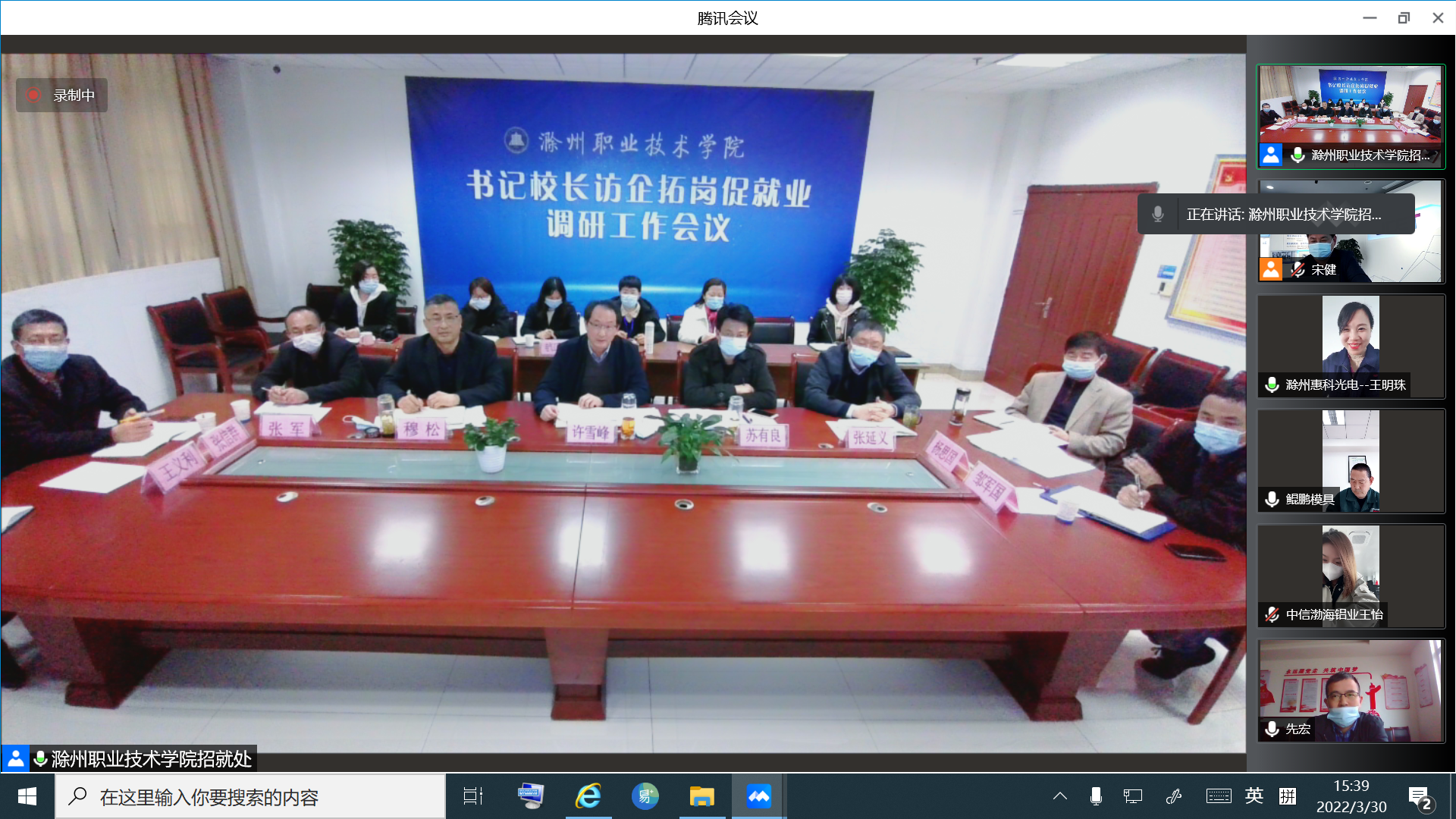 会上,许雪峰表示,awc官网高度重视毕业生就业工作,尤其响应市委市政府的号召,引导学生在滁州就业。去年底,学校面向滁州企业组织召开了多场“云招聘”活动,目前5153名毕业生大部分毕业生仍在滁州实习。为进一步提升学校人才培养水平、优化专业设置,也为提高学生留滁率、企业留人率,希望更多的企业参与、支持、配合学校教育。许雪峰提出,基于目前疫情防控严峻形势,要在做好疫情防控工作的同时,落实好学生实习工作;校企双方共同探讨如何进一步深化产教融合与校企合作,共同制定人才培养方案,拓展订单班等合作模式,落实“双主体”育人;加强宣传力度,形成广告效应,吸引更多的学生到滁州、到在滁企业。
