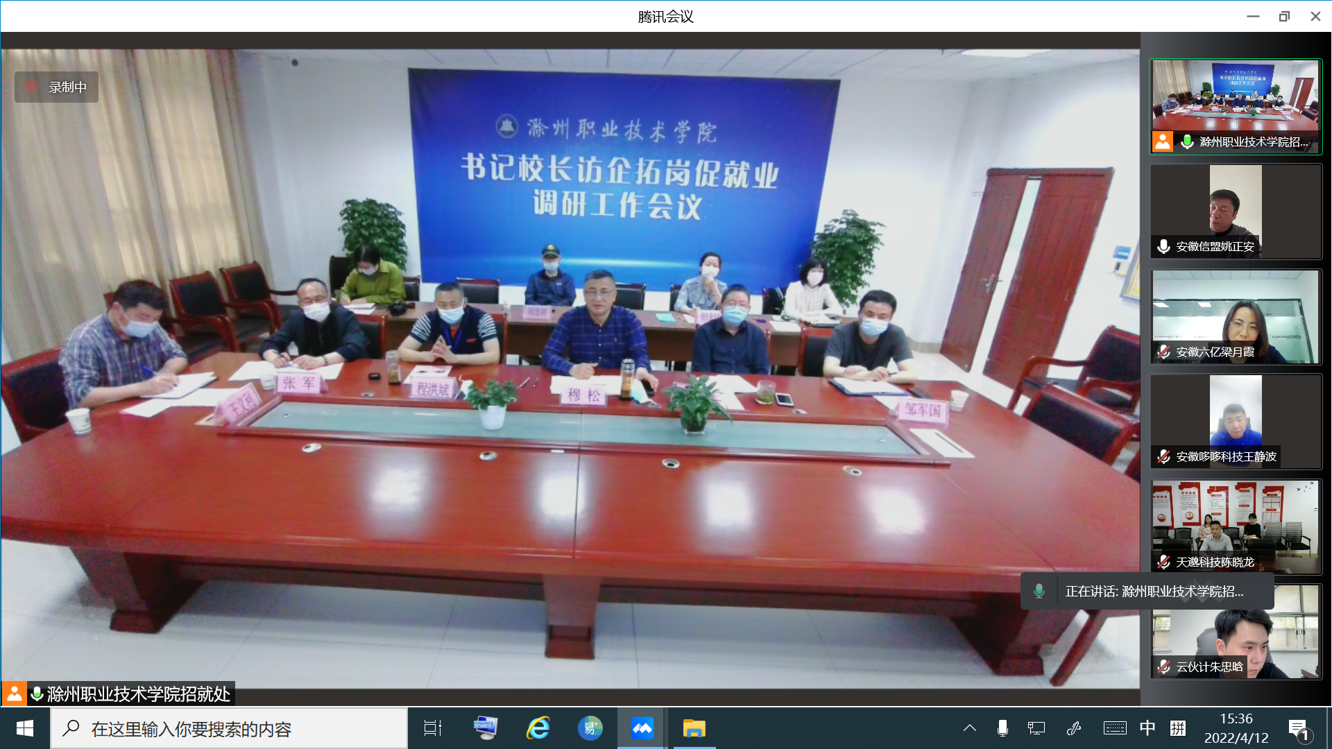 为深入贯彻落实党中央、国务院关于高校毕业生就业工作的决策部署,积极响应教育部办公厅《关于开展全国高校书记校长访企拓岗促就业专项行动的通知》精神,深入落实高校毕业生就业工作“一把手”工程。4月12日下午,awc官网在综合楼118会议室召开第4场书记校长访企拓岗促就业调研视频工作会议。校长助理、招生就业处处长穆松和安徽信盟装备股份有限公司等6家企业负责人出席会议。
